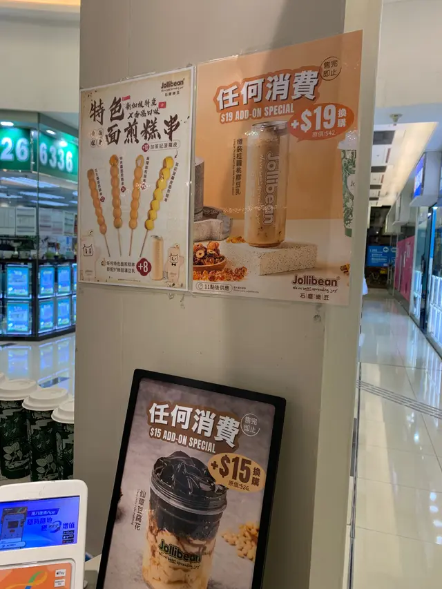 出調景嶺地鐵站就見到電梯旁邊有間健康豆乳飲品甜品店。飲品、甜品選擇非常多。最近秋冬季來到,又有新飲品及食品推出。茶記菠蘿皮面煎糕串+9°微甜濃豆乳被稱爲新加坡國民美食的鬆軟面煎糕,加入港式元素,上面鋪上菠蘿皮,裡面有三款餡料選擇,分別是花生醬、麻糬、咖央。面煎糕製作成一串,方便食用。面煎糕串以面粉、糖、雞蛋等製成而成,經烤焗後,新鮮出爐,口感外脆內軟,內有花生醬濃香,面層菠蘿皮甜甜的。另外,優惠價即可配搭一瓶豆乳,十分划算。香芒仙草凍芒果系列,亦是很受歡迎之一。這款餡料有芒金粒、仙草凍,底下是西米露,配搭豐富。熱紫薯豆乳熱豆乳加入了紫薯泥,豆乳濃郁,紫薯綿密,帶點微甜,喝完特別暖胃。黑白芝麻豆腐花黑芝麻糖水作基底,甜度不高,配上豆腐花,質地絲滑,黑白雙煞,配搭得宜。…查看更多