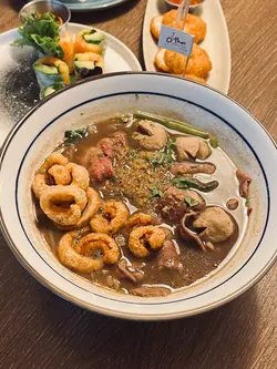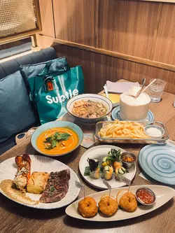 每次經過啟德這家店總想進去試吓!木系玻璃幕門採光超足🌞坐裡面能望到啟德園區風景,簡約裝修帶點度假感,好適合飯聚~最近試咗新出的泰式系列,清新又夠泰味,完全沒失望!.椰香冬蔭功海鮮意粉 🍝冬蔭功+意粉好合拍!酸辣味超突出,還帶椰香🥥中和,一點不膩。意粉彈牙,大蝦、青口、魷魚超新鮮🦑,撒上香茅絲和檸檬葉,香氣撲鼻,層次感滿分!.漢堡扒全日早餐 🥓分量驚人!漢堡扒一寸厚外焦內嫩肉汁滿滿💥,德國腸脆、煙三文魚鮮,還有牛油果、太陽蛋。多士外脆內軟超驚喜,食完超飽足~.泰式梳乎芒果糯米飯 🥭擺盤靚到想打卡!梳乎厘duang duang軟乎乎☁️,蛋香濃。芒果甜、糯米煙韌,淋上椰漿更奶香混著吃口感超豐富,甜度啱啱好!.糯米芒芒椰奶沙冰 🍧夏天必飲!芒果沙冰細滑鮮甜椰香不搶味,裡面還有糯米飯🍚,嚼著好有口感,清涼解膩又好睇~.黃金比例泰茶 🧋茶味濃郁無苦涩,加煉奶後奶香十足從頭到尾味道都不淡,配甜品解膩一流!…查看更多