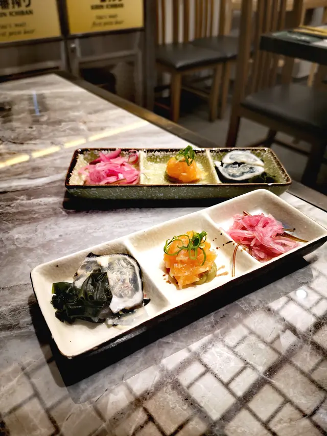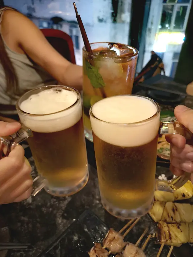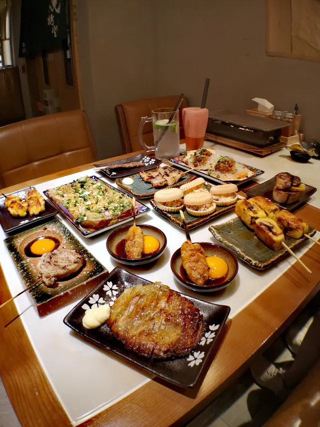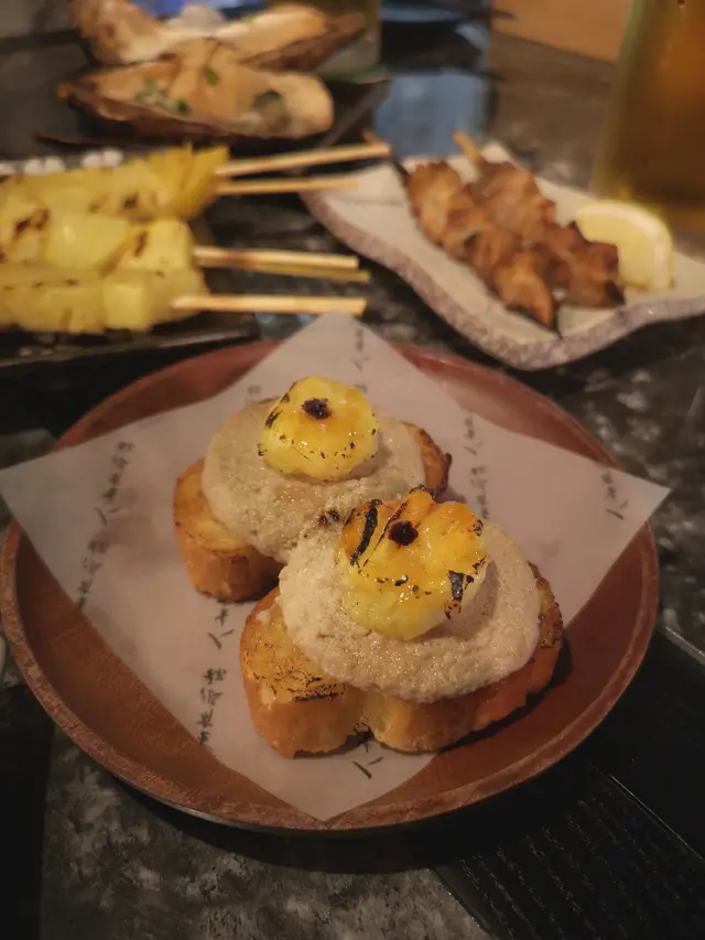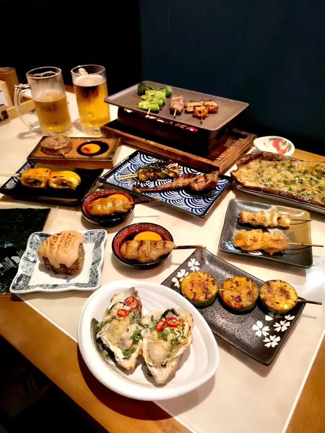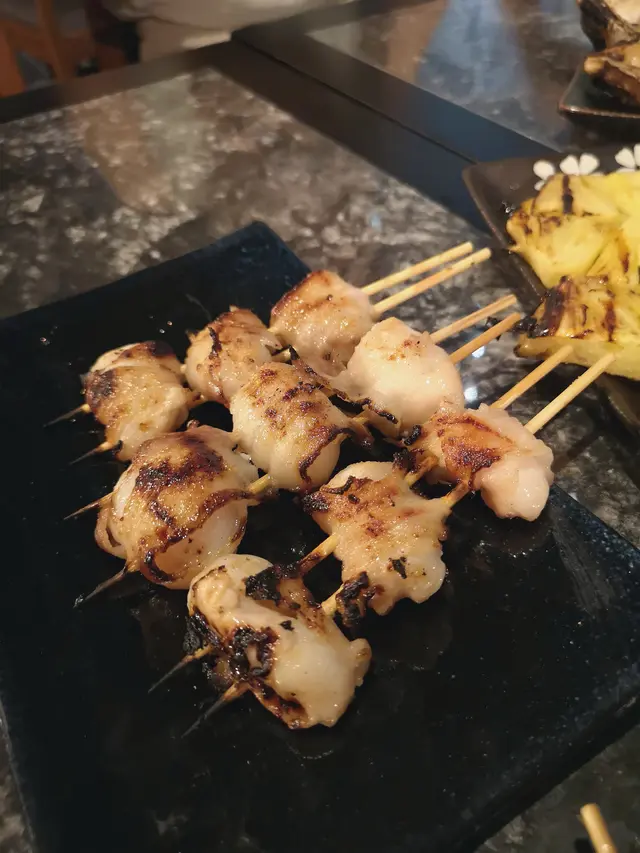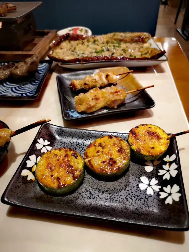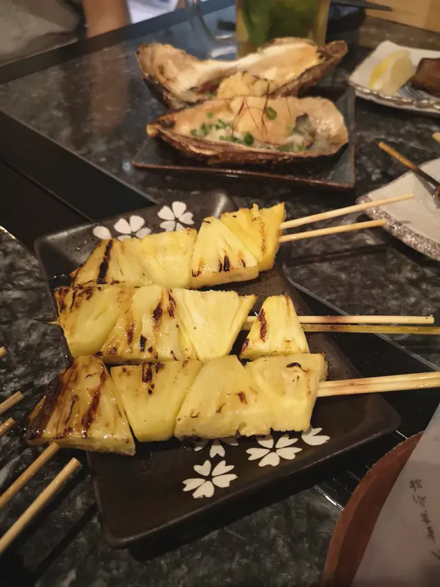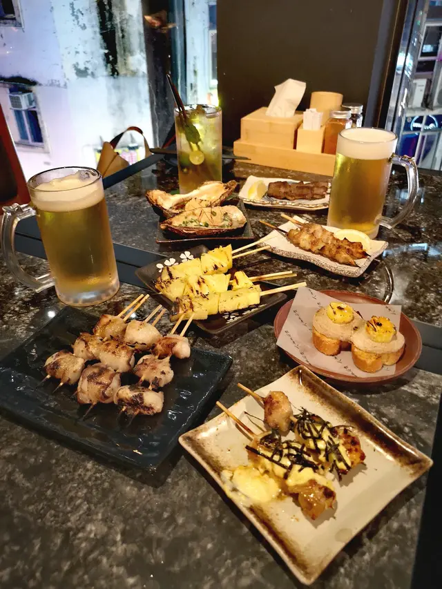 向來喜歡吃串燒,燒烤堂的串燒一直保持高水準,無論哪間分店的味道都一樣出色。串燒選擇多達百款,每次來都讓人感到驚喜,環境乾淨,晚上7點後幾乎滿座。生啤買一送一,串燒配上生啤真的是絕配,讓人盡情享受!蒜蓉燒廣島蠔 $48/2隻蠔肉飽滿,味道鮮甜,充滿蒜香,讓人食指大動。汁燒免治雞肉軟骨棒 (付月見) $36雞肉棒軟嫩,與汁燒蛋汁搭配,美味無比。豚肉節瓜波板糖 (付月見) $38豚肉片捲住節瓜片,口感層次分明,特別好吃。焦糖鰻魚芝士玉子燒 $28焦糖面層的玉子燒甜美可口,鰻魚肥厚,口感豐富。焦糖青蘋果鵝肝多士 $108多士香脆,鵝肝入口即溶,搭配青蘋果片酸甜解膩,令人驚喜。鹽燒鮮三黃雞腿肉 $28雞肉鮮美,啖啖肉,鹽燒的味道惹味,讓人回味。明太子燒飯團 $38明太子鹹香,飯團外脆內軟,十分飽肚。孜然燒蒜蓉茄子 $38茄子肉軟糯,孜然粉的味道濃郁,蒜香四溢。鹽燒白鱔 $48鱔皮香脆,肉質彈牙,鹽燒的味道非常惹味。福岡味噌松板豬 $28甜美入味的豬頸肉,爽口好食,令人滿足。燒芝士年糕 $28年糕煙韌,芝士醬滿滿,滋味十足。孜然燒西蘭花苗 $22西蘭花爽口,搭配孜然燒,非常開胃。牛油蜜糖粟米 $20燒粟米粒粒飽滿,加上牛油蜜糖,味道香甜。麻辣翠玉瓜 $16翠玉瓜大塊清脆,麻辣的味道令人驚喜。秘制燒羊架 $48羊肉軟腍多汁,帶有一絲羶香,非常美味。鹽燒豬肋肉 $24口感啖啖肉,鹽燒的原味好食,令人難忘。豚肉牛油果卷 $28豚肉包著軟滑的牛油果,加上沙律醬,美味滿分。蜜糖燒菠蘿 $18菠蘿甜美多汁,作為甜品完美無瑕。七寶生啤 $48生啤清爽,搭配串燒絕對好夾,買一送一的優惠更是超值!…查看更多