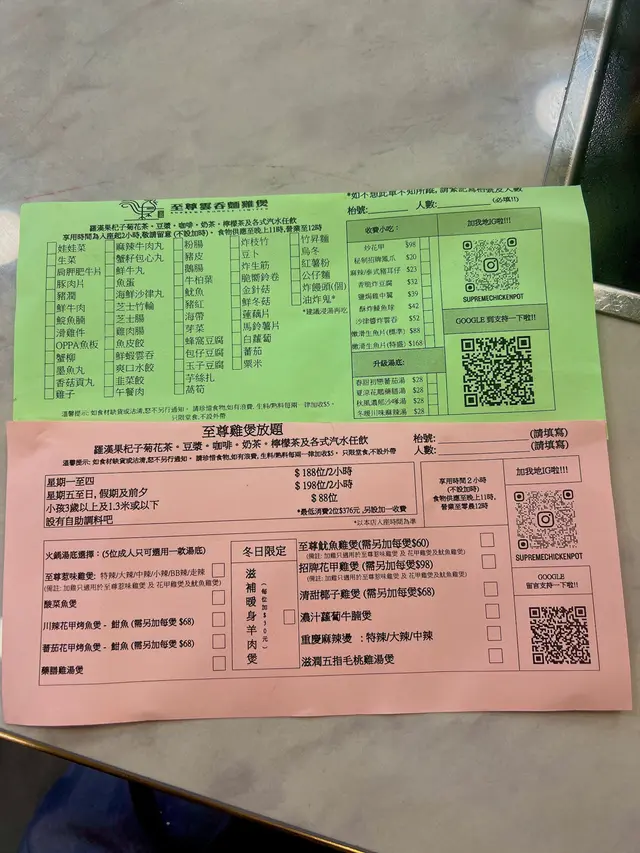 餐廳主打任飲任食雞煲打邊爐🥘平日每位$188性價比極高💯但唔包括收費小食及啤酒🍺至尊惹味雞煲🐔🍲今次主要係食惹味雞煲,上枱後店員會幫手將已醃製好的雞件同芫茜、芹菜、洋蔥🧅及蔥等香料炒至入味,雞件份量十足👍,叫左小辣🌶️,辣味程度可跟自己口味決定,每件雞件香辣惹味,啖啖肉好入味,不同部位的雞件食落有不同口感,友人鍾意食雞脾的位置肉質嫩滑啲,雞件食到七七八八可以用手機落單重點係無限加雞‼️,但想留肚打邊爐關係,只係再追加多一人份量雞件,平時唔係食肉獸的我,惹味雞煲令我忍唔住一件接一件😂炸饅頭🫓外皮炸到黃金香脆,內裡軟熟,再淋上煉奶一齊食真係冇得輸😋推介👍🏻打邊爐🍲食完雞煲後再加湯開始打邊爐屬雙重享受,火鍋配料超過50款選擇,包括有肉類,丸類,蔬菜及粉麵等,食完雞煲已有七成飽,所以打邊爐配料只叫左幾款黎食油炸鬼:好少見有油炸鬼,滾一滾就食得魷魚🦑:食落爽口彈牙,唔會韌芝士竹輪🫔:要小心熱咬落去食到芝士oppa魚板🍢:外形好似韓國的魚糕,唔想淋就唔好滾太耐娃娃菜🥬及粟米🌽:吸盡湯底精華辣辣地好惹味飲品任飲🥤除左罐裝汽水🥤外,仲有茶餐廳普遍飲品(咖啡,奶茶,檸檬茶及菜蜜等),仲有豆漿及羅漢果杞子菊花茶等羅漢果杞子菊花茶:飲到淡淡菊花茶味,食完雞煲飲返杯清熱解膩…查看更多