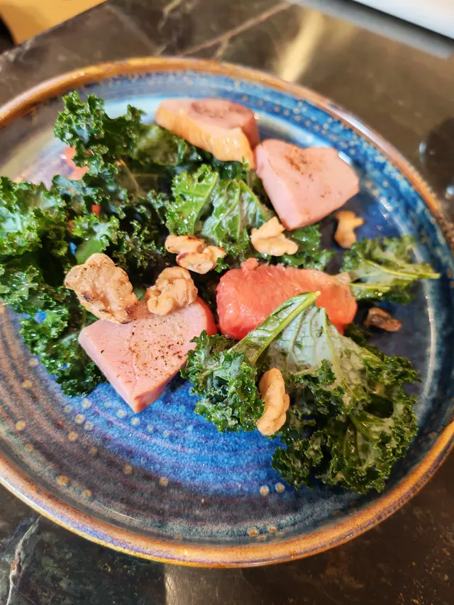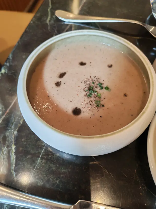 閨蜜約我到尖沙咀The Grill Room 享受一頓豐富西式午餐。侍應主動添水和講解餐牌,有禮又細心。🎈餐湯:先來一碗暖笠笠蘑菇黑松露湯,菌香濃郁順滑,加入少許黑胡椒更突出香氣。🎈沙律:🌱生菜沙律則簡單清新,平衡整體油膩度。🪴另一款雨衣甘藍沙律驚艷——煙燻鴨胸與脆香腸片,佐以清新柚子水果,酸甜平衡。🎈主菜:🐑Lamb shank 煮得軟腍入味、醬汁香濃,是喜歡肉香人士的滿足之選。🐟Seared salmon 外皮微焦香脆、魚肉肥厚,配搭菠菜苗和枝豆非常夾。🎈餐茶香濃即磨咖啡與特製蘋果汁,果香沁甜。🎈甜品cheese cake 質地細滑、奶香突出而不過膩;Tiramisu 帶淡淡咖啡與可可香,完美的飯後甜品。閨蜜無介绍错, 無論是lunch menu或executive lunch,都相當稱職,味道、環境與服務三者兼備。…查看更多