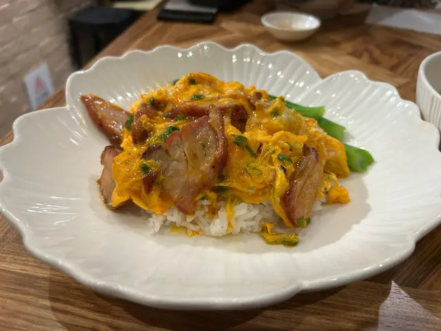 最近好多好評!好高人氣的叉燒店!夜間走去試下係咪真係咁好食店入面有師父即場斬燒味,做到無停手叫咗個滑蛋叉燒飯,包埋例湯,係竹蔗蘿蔔湯,味道唔錯 。來了!急不及待食!有條菜幾好叉燒好食,但蛋同豉油令到個飯太鹹下次再試下唔同燒味…查看更多