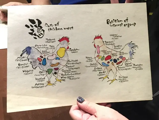 在IG偶然看見某BLOGGER介紹中環的酉玉YOKITORI, 相片賣相不錯, 便膽粗粗的打去BOOK枱, 星期六晚我們3人只能訂到9點。當晚3號風球,橫風橫雨,當然不會影響我們嘗試美食的心情。餐廳的位置座落於斜路上,我們在蘭桂坊一路走上去,很快便到了。和日本的YOKITORI店差不多,客人都是坐COUNTER位置,日本師傅站在中央燒烤。雖然不大,但很有氣氛,服務員很有禮貌說因為客人未埋單,請我們等一下。約五分鐘左右,我們便坐下了。服務員殷勤的遞上MENU及DRINK LIST,如看不懂MENU上的雞部位的名字可看背面,日英對照加上圖片解釋,左邊是雞肉分佈,右邊是內臟分佈。餐牌有SET DINNER,價錢約288-588,由廚師發板,我們今次是單點,希望能一次過試更多的美食。食物方面,點了雞肝(香、滑)、腎(中間JUICY)、膝頭軟骨(爽爽脆脆),厚雞皮(必吃!)、雞頸(嫰滑啖啖肉 必吃!),雞尾軟骨(又酥又脆)、CALF MUSCLE腓肉(嫰滑不肥膩),橫隔膜肉(肉嫰骨脆),AROTA大動脈(第一次吃,一試難忘!),肩肉(加上日本雞醬,味道一流),CHICKEN OYSTER(有皮有肉, 好驚喜),豬腩肉(肉中包著子姜,正),豆腐,銀杏、OKURA、辣椒、露筍及飯團。另外飲品點了啤酒、梅酒及有汽礦泉水MIX一起喝。餐廳另一亮點是有過百種酒任君選擇,所以不建議自帶酒。每樣都燒得恰到好處,而且服務態度很好, 感覺在日本才吃得到的味道竟然香港也吃到,好幸福!