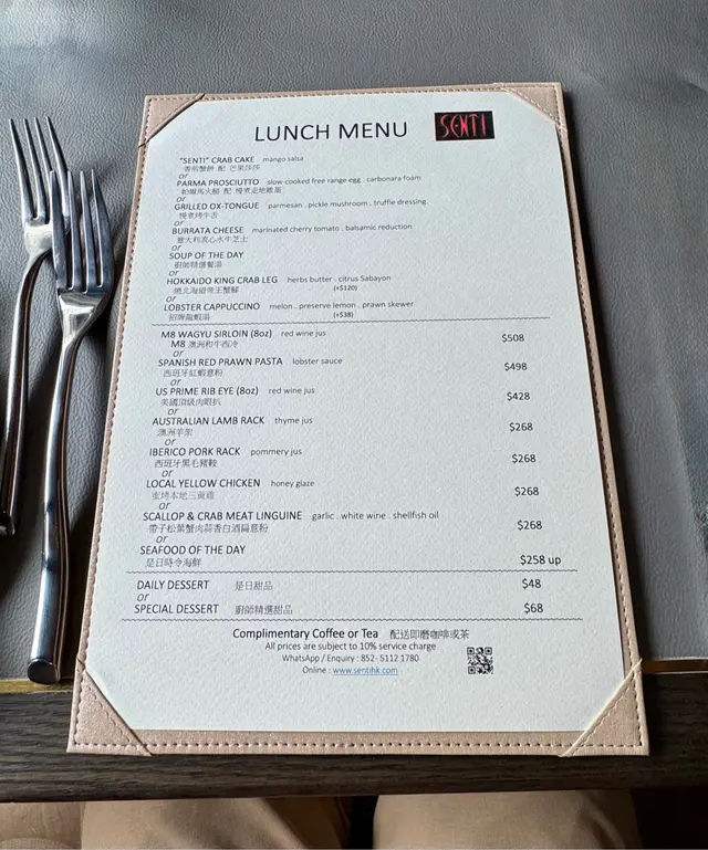 Used to meet up with a group of friends for meals regularly. The restaurant was recommended by a friend long time ago and it was picked because one of the group wanted to have non-Chinese cuisines.The restaurant is small but the vibe is cozy. Staff was attentive but not intrusive in introducing their signature dishes and serving food.The lunch set is a 2-course meal including a soup or an appetizer and a main course.💢Soup of the day - Mushroom soupThe mushroom soup was an add-on item because all of us wanted to have both a soup and an appetizer. As an add-on, the mushroom soup was small in size and came with some pieces of home-made bread. The taste of it was so good that every drop was eaten up.💢"Senti "Crab CakeThe crab cake was probably the signature dish of the restaurant. It has a golden crispy exterior, while the interior was filled with shredded crab meat and vegetables. The taste of the crab cake was rich and savoury. The tangy mango salsa was good at balancing the heaviness of the crab cake.💢Grilled Ox-tongueAs an appetiser, the portion of the ox-tongue was really generous. The ox-tongue was supple and moist. The truffle dressing added an earthy aroma to the dish.💢Seafood of the day - Monkfish The monkfish was firm and dense with its exterior fried golden brown. The monkfish was placed on top of a pool of bouillabaisse, which was full of seafood flavours.💢Spanish Red Prawn PastaThe red prawn was huge in size, with a striking visual effect, no wonder it's the most expensive dish of the meal. The prawn was decently cooked, making its meat soft, sweet and juicy. The pasta was al dente in texture. It was fully coated with a thick layer of lobster sauce, which made the pasta as enjoyable as it should be.💢Tiramisu The staff highly recommended their tiramisu to us. The dessert has an intriguing look, which was very different from the traditional layered tiramisu. The mascarpone cheese on the top was light and fluffy, while the bottom was a layer of biscuit crumbs mixed with raisins, coffee liqueur jelly and cream making it very flavorful and delicious.…查看更多