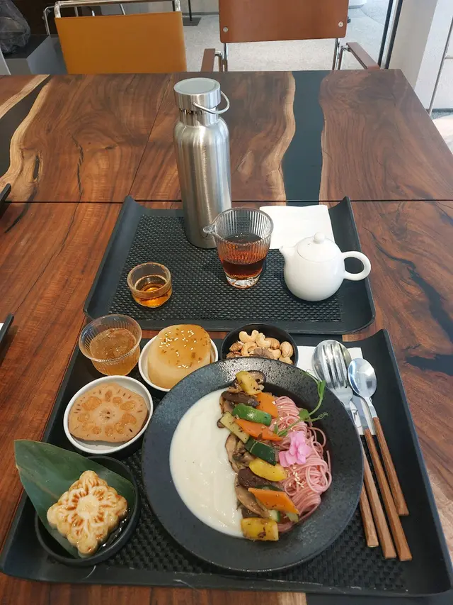 而家素食,唔再係大××素食呢d,而家素食,可以係意想不到的藝術品11點去到,無人,任坐。服務員會問是飲茶定食埋野,再推薦合適坐位。坐低,細心介紹如何選餐、選茶。有用QR code點餐,但非常歡迎人手落單。服務茶,主要有4款(人生4階段),4款中又自帶4種品味方法,有熱有凍有加奶有mocktail我叫左3個點心+素麵,心態已經到左老人既我,茶緊係揀最後一種。食物擺盤唔只靚,重要好食茶,唔只有一小壺,重有個大壺俾你任加熱水。第一壺茶,幾濃,但加水沖淡左又係另一種品嚐方法。人生也是如此,由濃變淡,但另有一番風味。以灣仔黎講,又任你坐,唔趕你既休閒地方,絕對係一個好選擇。…查看更多