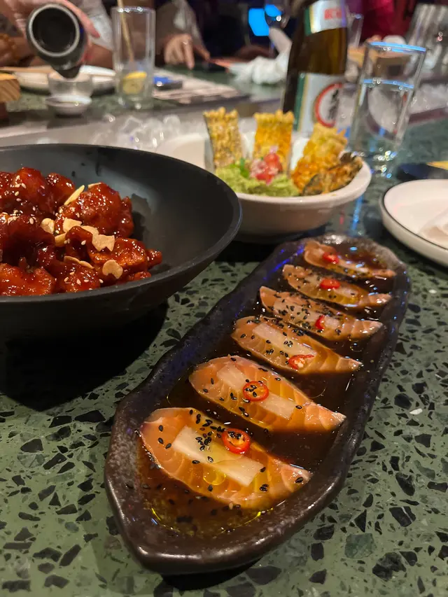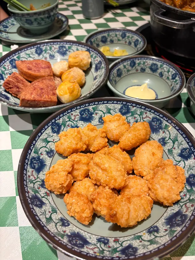 先食雞煲,之後換煲打邊爐。手切牛肉、配料任食,啤酒cocktails 同飲品任飲。地方唔大個場好爆,裝修幾好feel,老闆員工幾nice幾玩得。雞煲好濃郁(個人覺得偏咸),有豬皮豬雜,多到食唔哂。打邊爐有6個湯底,揀咗胡椒豬肚湯底,裡面居然有牛𦟌牛腩,仲好淋好入味。手切牛肉、振興牛丸同其他配菜都好得。最後送埋一大碗甜品仙草芋圓,幾圓滿。啊!鹽酥雞同椒鹽燒賣好好食!想encore! 不過真係要早啲book位。…查看更多