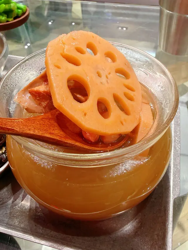悠悠食堂主打健康清淡路線,兩款湯餐都令人滿意。蓮藕花生陳皮排骨湯味道濃郁,陳皮芳香,蓮藕粉糯入味,湯底不油膩,喝完仍覺清爽。配菜的和風牛肉鹹香適中,搭配彈牙的淮山麵,整體平衡。熱柚子蜜香甜微酸,暖胃又解膩。另一款鮮淮山馬蹄紅棗豬骨湯更見滋潤,湯色清亮,紅棗與馬蹄增添天然清甜,感覺養生不重口。鹵水豆腐軟滑入味,蒟蒻麵低卡但有咬勁,滷水芥蘭爽口不苦。整體份量剛好,味道與營養兼顧,確實是都市人輕盈飲食的好選擇。…查看更多