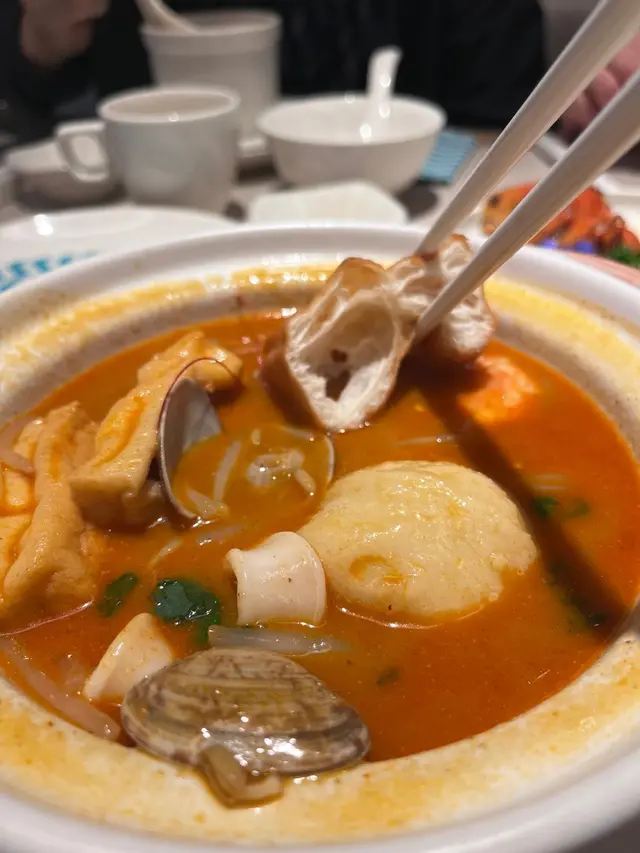 熟醉大閘蟹大閘蟹肉質豐滿而肥厚,蟹膏充滿米酒香氣,很濃郁,醉醺醺感覺,令人陶醉。莆田海鲜滷麵麵條好入味,條條都包裹着湯汁,湯汁充滿海鮮鮮甜,每一口都很滋味。沙茶海鮮鍋濃郁嘅沙茶湯汁,入口辣辣地,佐飯一流。金湯時蔬用上時令時蔬,今次用上豆苗,入口鮮甜而不油膩。興化炒米粉整碟有豐富嘅海鮮,令米粉非常鮮香。竹笙蟹肉海參羹海參與蟹肉很豐富,入口甘甜,搭配竹笙,更有獨特風味。黑豆紅棗竹笙排骨湯每一口都有濃厚肉香和紅棗微甜,暖心又滋補。…查看更多