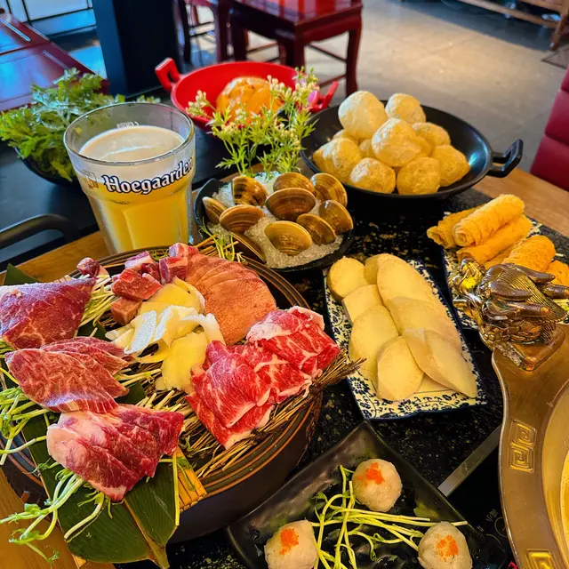 !!!性價比壽喜燒首選!!!舖內好好vibes 1秒置身小日本🇯🇵專人烹調 全程淨係負責食食食同食 可以小廢物🤤食到好嘢 又可以同老best 吹到水 呢個weekend 真係叉爆電🔋🇯🇵招牌壽喜燒二人餐$659🐮日本國產牛牛頸脊&美國頂級牛頸脊壽喜燒🫕黑松露燉飯牛牛 🐮日月精華加壽喜燒汁 練成的燉飯 好甜好creamy 🤤建議 食洋蔥🧅既朋友仔 要加埋落去熬 成個甜度會升級🌟🍶清酒煮鮮貝類湯頭無比鮮甜 蜆量好足 🐚配小法包🥖要🦪生蠔+$35抵!本身買一隻要$48 但係轉就$35有兩隻🤤海水味比較重 同清爽 💦🍟松露芝士薯條薯條山!!薯條新鮮即炸 店員仲溫提我哋薯條好熱小心辣口🤣🍋熱情果水果茶薩姆紅茶茶底好濃 香港人最對野飲最高評價:唔太甜 果味同茶比例岩岩好☕️🍨雪糕梳打波子汽水上面牛奶雪糕好好食!記得要食咗雪糕先 如果唔係就會沉沒🥹呢杯會係細細個夢寐以求嘅嘢飲 🇯🇵…查看更多