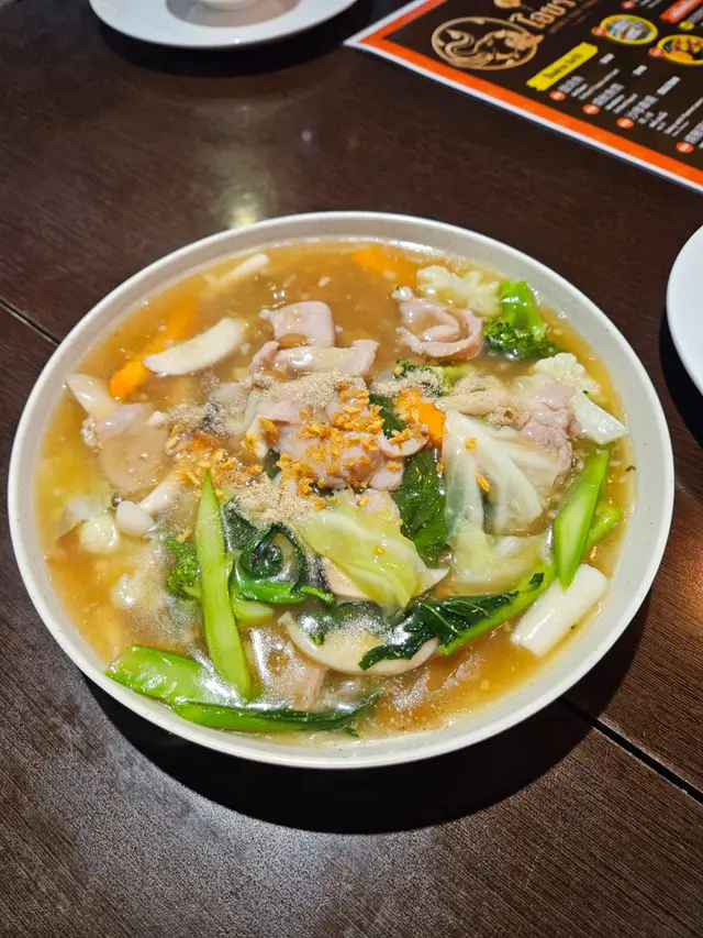 尖沙咀亞士厘道「天下無雙」一入門就感受到濃厚的港式氛圍,環境ok gei,價錢合理,每一樣嘢都係大家好熟悉嘅美食🥰令人倍感親切。樣樣都嘗試😃回憶返晒嚟。牛魔王麵餐這碗麵簡直是牛肉愛好者favourite!牛腩軟嫩,牛筋彈牙,牛栢業的鮮味,再加埋油麵,更是令人讚不絕口,牛丸ok,整體湯底濃郁。有水準嘅車仔麵。懷舊4寶麵蘿蔔清甜,豬紅香滑與豬皮入味。搭配讓人完美,陳皮魚蛋勁正,配搭完美,好食到令人停唔到口!生菜魚肉生菜魚肉讓我瞬間回到童年。就係嗰種街小店魚肉生菜,湯底配有麻油😍就係嗰種風味👍🏻👍🏻👍🏻完全做到全隻炸雞翼全隻炸雞翼而家好難食到😝炸雞翼外脆內嫩,醃製得恰到好處,咬下去的那一刻,香氣四溢,讓人忍不住多點幾隻!飲品咸檸七&凍檸茶當然少不了。清涼解渴;車仔麵好伴侶❤️讓人心情愉悅。餐廳仲有好多唔同嘅地道選擇一定會再嚟,亦都一定推介,所有嘢都好有水準必食必試👍🏻👍🏻👍🏻整體來說,「天下無雙」的餐點不僅味道出色,份量也頗足,絕對值得一試!如果你在尖沙咀附近,不妨來這裡享受一頓美味的港式餐!…查看更多