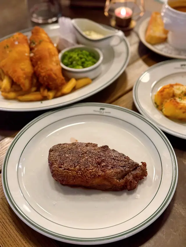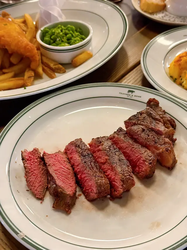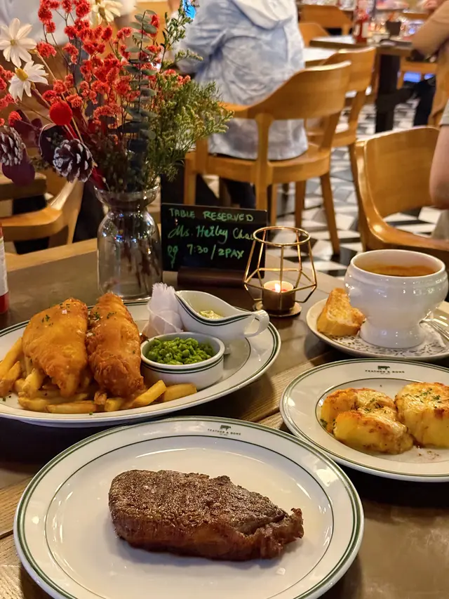 喺香港有多間分店嘅Feather & Bone💚品牌創立於2015年,集合肉店、雜貨店同英式餐飲三個元素,主張引入農場直送嘅優質食材,更供應不含激素、抗生素同生長刺激劑嘅肉類🥩逢星期二仲設有 T Bone半價添🐄澳洲穀飼肉眼可以先到肉類櫃檯揀選喜愛嘅肉類🥩選擇好多🤩可以同肉類專家一同選擇並討論烹調方法🔥跟住可以揀配菜同醬汁😙我揀咗澳洲穀飼肉眼🐮肉質柔嫩多汁,牛肉味道濃郁🥩千層芝士焗薯芝士焗薯用上香濃Gruyere芝士🧀質地細緻,外層焦脆,焗薯口感creamy🥔法式龍蝦湯用上龍蝦肉熬製嘅法式濃湯🥣再淋上調味奶油☁️龍蝦味道濃郁🦞湯入面仲有龍蝦肉,味道鮮甜😛炸魚薯條「Coopers Pale Ale」手工啤酒粉漿炸黑線鱈🐟炸魚大大件啖啖肉😛外層香脆可口,內裡魚肉嫩滑🐟配上自家製他他醬及薯條🍟燒粟米粟米香甜🌽用上味噌牛油醬汁,非常惹味香口😛上面加上Ricotta芝士🧀口感豐富…查看更多