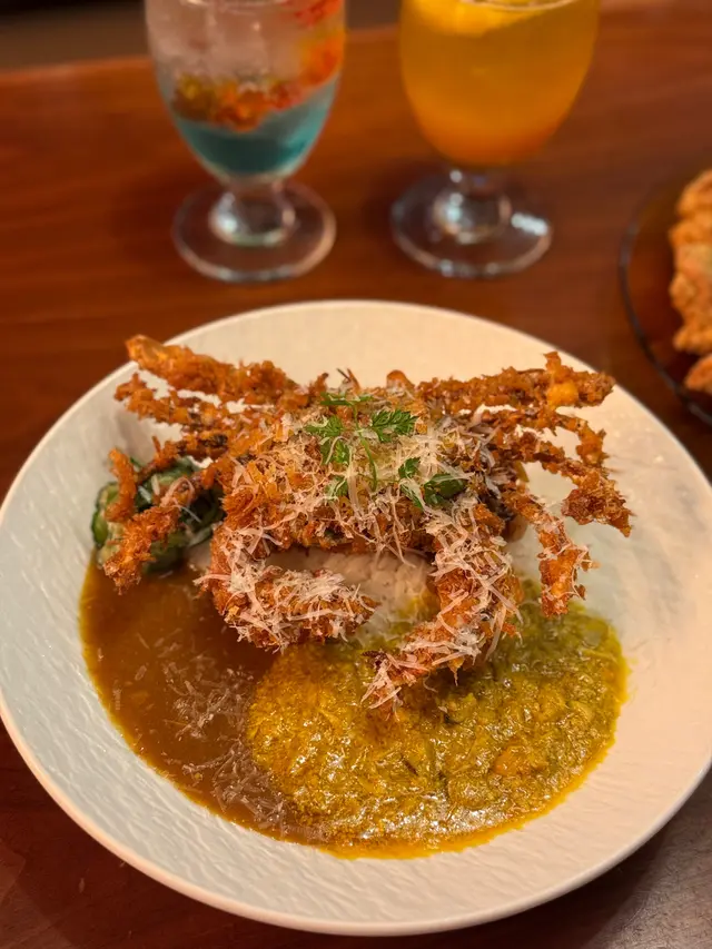 秋風起🍁喫茶ちょうぼ正式迎來一年一度嘅蟹季限定🦀從蟹黃嘅濃郁香氣,到蟹肉嘅鮮甜細膩,每一道料理都藏着秋天嘅奢華滋味呢個秋天,邀你一同展開一場「蟹物語」,嚐盡季節嘅饗宴🦀極強勢!軟殼蟹與濃厚蟹皇膏黃咖喱飯 蟹肉x蟹皇膏x黃咖喱=終極奢華✨以濃郁蟹皇膏搭配香氣滿滿嘅日式黃咖喱🍛軟殼蟹香脆可口🦀入口係滿滿蟹嘅精華✨每一口都係大滿足😛蟹旨膏醬唐揚炸雞 金黃香脆嘅日式唐揚炸雞🍗遇上濃厚蟹膏醬汁,鹹香與鮮甜交織,意想不到嘅絕妙滋味😛炸雞外脆內嫩,非常juicy💦屋台風蒜香貝殼意粉 意粉上面有青口同蜆肉,大大件啖啖肉,味道鮮甜😛成碟意粉充滿濃郁蒜香味🧄意粉彈牙入味🍝吸盡精華✨完熟南瓜!濃香芝士蛋糕 外型好似切開咗嘅南瓜一樣🎃蛋糕口感鬆軟,濃郁南瓜味,中間南瓜忌廉creamy😛夏祭金魚梳打 係我最愛嘅金魚🐟賣相好靚嘅梳打🍹有一條條金魚造型啫喱喺入面,打卡一流👍🏻 波子汽水味,清甜得嚟好fresh🌿柿子香露味道香甜嘅柿子香露,口感順滑,唔會好甜👍🏻酸酸甜甜,夠晒清爽🧊…查看更多