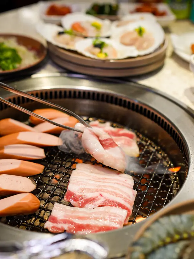 朋友住喺將軍澳,久唔久都會去佢屋企玩,夜晚就會去佢樓下大型商場逛街、食吓嘢,而且咁啱最近天氣凍,所以搵個燒肉食吓!今次仲發現有個新menu推出,和牛放題套餐100分鐘任食。餐廳以輸送帶形式送餐,即點即到快捷衛生,自助吧可自選~各式蔬菜沙律、海帶湯、秘製和牛肉醬伴飯、各式汽水冷熱飲品及甜品。肉類有特選US牛、名物、豚肉、雞肉、海鮮、野菜涼拌小食,飯、湯、麵。海鮮類有帆立貝、海蝦、魷魚筒⋯其中黑松露帆立貝特別出色。…查看更多