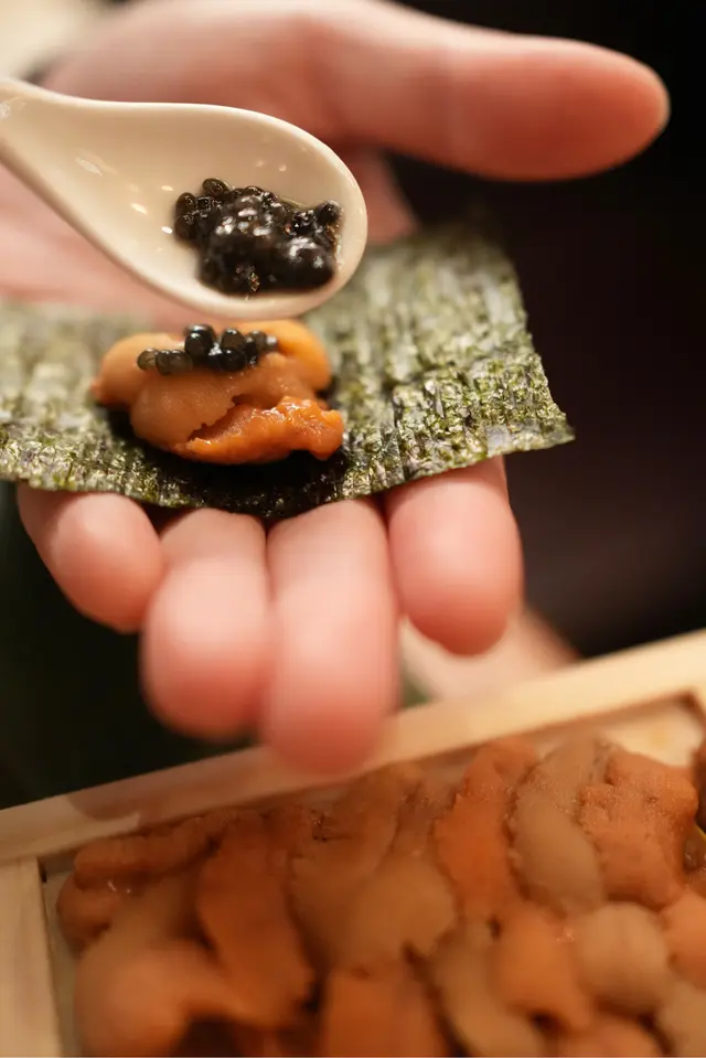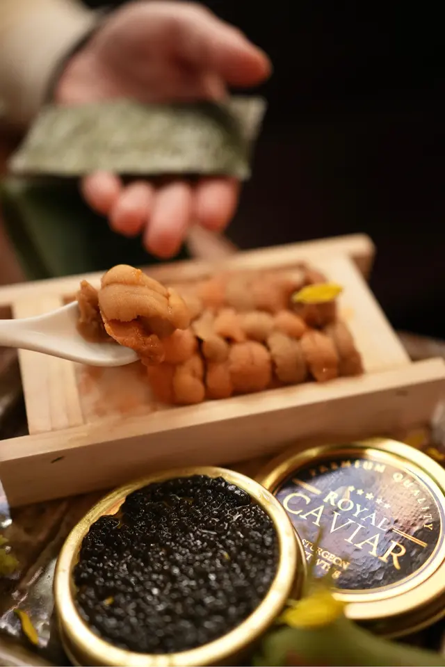 呢個優惠真係為海膽粉絲而設。北海道原板海膽配鱘龍魚子醬令人無法抗拒嘅優惠,只要提前兩日訂枱,就可以用驚喜價$100享用北海道原板海膽配鱘龍魚子醬,仲要唔係一枱一客,而係人頭計。呢個期間限定真係抵到爛,而且整到靚靚仔仔比你。除咗海膽,當然亦有好多不同的日式料理。山渣蓉伴香煎鵝肝吐司鵝肝入口即化,沒多餘油脂,山渣蓉錦上添花。鰹魚半敲燒配洋蔥汁鰹魚厚實,魚香味出眾,以洋蔥汁提鮮。慢煮鴨胸伴醬油脆脆慢煮鴨胸肉質淋滑,以醬油脆脆加洋蔥刺激味蕾。特濃蟹膏甲羅焗飯將甲羅燒塞滿飯同蟹膏,濃香蟹膏同飯結合,比起平時食嘅甲羅燒更出色。芝麻脆香雞翼 雞翼又脆又帶芝麻香,雞肉軟嫩。博多明太子掛稻庭烏冬洞庭烏冬煙靭彈牙,豐富口感,而且掛滿明太子醬。自家製醬燒墨魚腸墨魚腸口感近似台腸,口感結實,醬燒微甜。自家製免治雞肉蓋輕井澤煙燻芝土免治牛舌棒雞頸肉串雞膝軟骨串黑豚腩肉大蔥串日本冬菇京都絹豆腐秋葵講吸睛,一定要揀紅蛋黃嘅自家製免治雞肉蓋同埋輕井澤煙燻芝土免治牛舌棒,前者有澎湃肉感,後者口感爽脆,大家一樣有豐富蛋香。其他串燒款式多,亦都好高質,重點係油膩感覺並不強烈。…查看更多