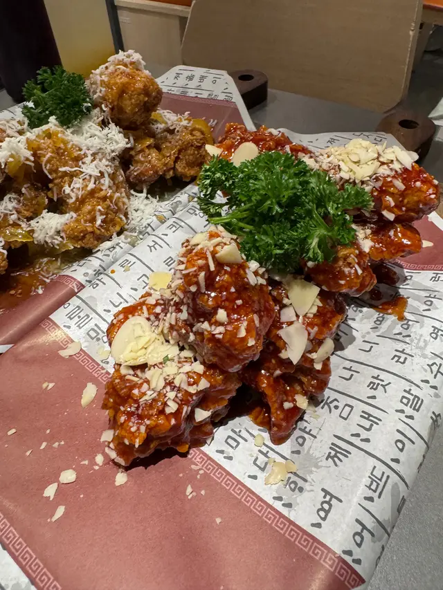 海陸空 (尖沙咀)尖沙咀金馬倫道33號The Cameron地舖喺尖沙咀一直都唔難搵韓國嘅餐廳,特別係有大家都一定識嘅韓國街。 今次見朋友介紹就去另外一間韓印紅嘅韓國餐廳試吓。眼見樓面大部份嘅員工都係韓國人,不過大家唔需要擔心,因為佢哋大部份都係識講廣東話或者中文。溝通上唔會有任何問題,同埋佢哋仲會好熱情咁介紹你可以食乜嘢。我哋叫咗半份菜包肉,半半炸雞(揀咗甜辣同埋柚子味)。落單嘅時候店員都已經話份量係會好大,點知嚟到真係超巨型,我諗可以一大班朋友嚟食。個菜包肉啲肉炆到已經超級腍,胖胖炸雞完全唔覺得油,加埋杯梳打特飲就啱啱好!…查看更多