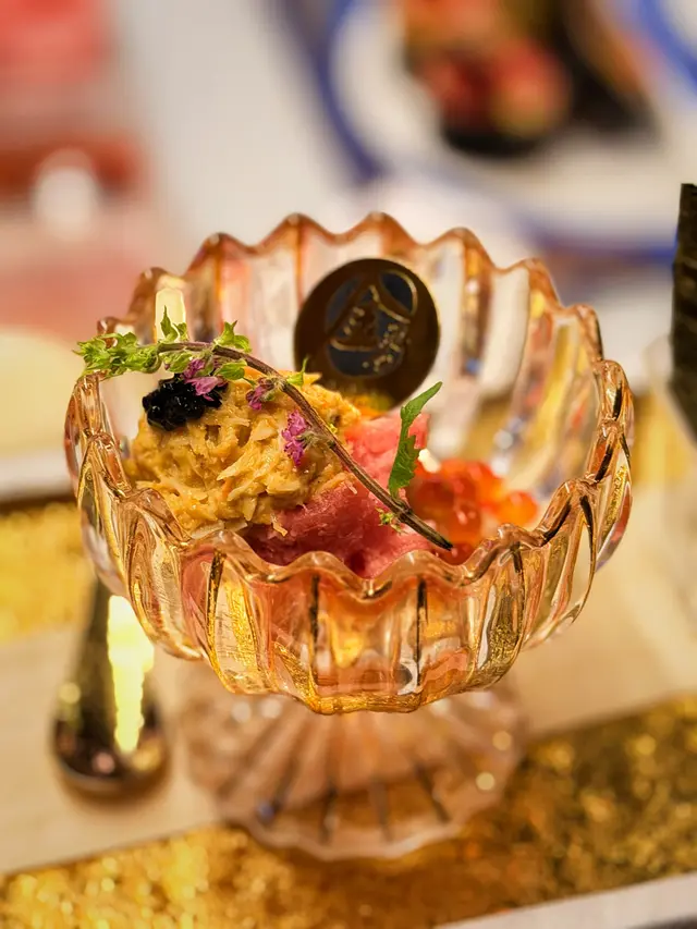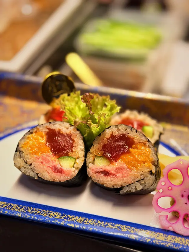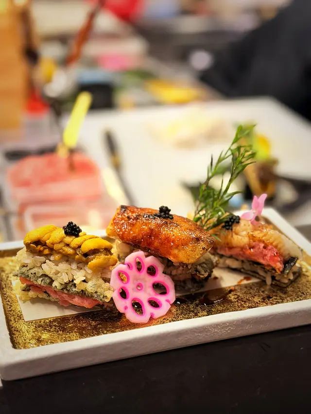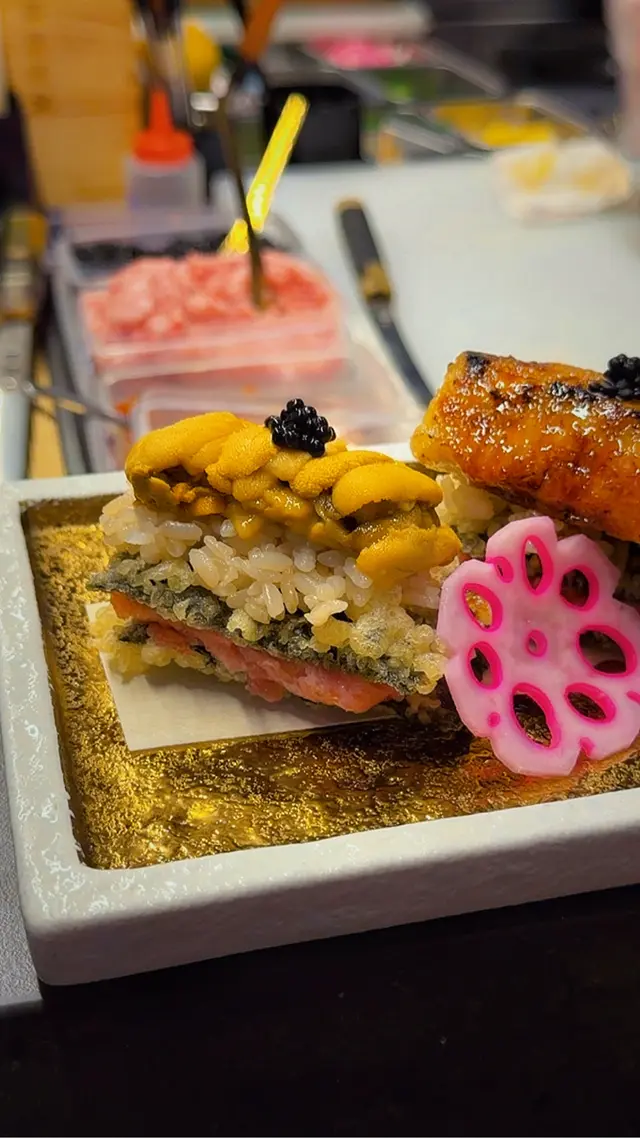 荔枝角人氣日式居酒屋🏮呢間日式居酒屋由招牌卷物到創意脆脆,全部用料十足,平日夜晚去座無虛席,質素都不錯~🥂 金酒杯 $168高腳杯裝住海膽、拖羅蓉、三文魚籽同松葉蟹肉,附紫菜自製手卷,儀式感十足!🍣 金龍珠海膽吞拿魚蓉卷Omakase級招牌卷物!捲入海膽、吞拿魚蓉、醃漬蛋黃同青瓜,蛋黃半流心帶醬油香,口感軟滑豐富~🐮 焦糖鵝肝和牛千層脆脆頂層焦糖鵝肝表面微脆,中間軟心即溶;中間夾住和牛同壽司飯,底層係吞拿魚蓉,用脆紫菜天婦羅承托,層次感豐富~🐟 海膽拖羅蓉千層脆脆 $138兩層鮮甜海膽鋪滿面,下面係滿滿拖羅蓉,海膽控必點!🐟 炙燒右口魚裙邊拖羅蓉海苔脆脆 $88油脂香濃嘅炙燒右口魚裙邊,再疊上綿滑拖羅蓉,一啖咬落去好脆、軟、滑,魚油香同拖羅鮮味十足!🍚 兩款極上丼物▫️ 蟹皇丼 月見蟹皇三文魚籽飯$288鋪滿濃郁蟹皇+三文魚籽,撈勻月見蛋黃更Creamy▫️ 新銀丼•炙燒右口魚邊三文魚籽配柚子醋飯 $198炙燒右口魚邊油香滿溢,配柚子醋飯清新解膩🍤 巴馬火腿芝士天婦羅 $88外層薄脆,咬開即流心,充滿鹹香…查看更多