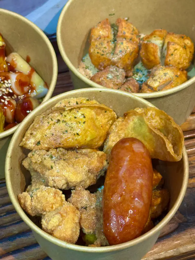 【元朗小食出色手搖飲品店🥤茶九里】-收工放學想飲杯廢水😋篤串魚蛋😌茶九里一次過滿足我兩個願望👏🏻😎佢嘅炸物出色👍🏻有啲似返到台灣嘅感覺!路過行過唔好錯過😋-😋炸物拼盤🍤$40請容許我介紹咗小食先👍🏻因為真係俘虜到剛放工小編嘅胃😂拼盤有炸蛋餃、台灣腸、炸燒賣、花枝丸同埋鹽酥雞😍個鹽酥雞抵讚調味同豪大大差唔多,但係啲肉嫩滑好多!台灣腸皮脆肉香🫶🏻大大碌我鍾意🙊總之就全部好食啦~好味指數:🌕🌕🌕🌕🌗-😋炸花支丸$20本身個拼盤係諗住拎埋返屋企同屋企人食嘅🤣點知一嚟已經清晒🙂↔️唯有加多個花枝丸👍🏻值得一讚係佢嘅外賣盒係特登剪咗個窿俾佢通風😎所以拎到返屋企都仲係脆嘅 !OMG!-😋腸粉三寶$22三寶有腸粉、陳皮魚蛋同魚肉燒賣🔥魚肉燒賣係有咬口嗰隻😜加埋甜醬豉油麻醬同芝麻🤪經典組合!好味指數:🌕🌕🌕🌕🌘-😋黑糖珍珠鮮奶🧋$30一拎到手就知瀨嘢🥹一杯但勁大杯想肥死人咩👀個黑糖冇話好香但啲珍珠又整得幾好😌唔冧煙煙韌韌🫶🏻$30抵飲💰好味指數:🌕🌕🌕🌕🌑-😋百香芒果多多🥭$38想refresh啲就可以嗌呢杯百香芒果多多👀睇相都見到杯底沉咗好多百香果籽同埋芒果粒🥳堅足料唔係hea你😌加埋益力多酸酸甜甜👍🏻解膩之選好味指數:🌕🌕🌕🌕🌑-個人認為飲品還好😏不過小食就幾正,而且價錢都有呵住大家嘅錢包🫶🏻食得過!-📍茶九里 (元朗)元朗福康街10號地下A2號舖…查看更多