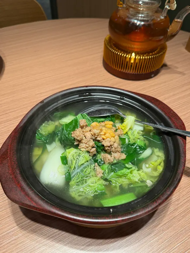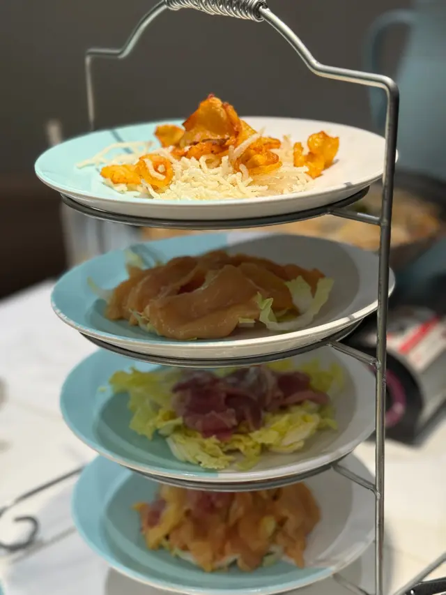 想食火鍋,但係又不想要放題般匆匆忙忙吃到飽,湊湊都係一間合適嘅地方。 相對其他對其他火鍋店,這間店確實感覺舒適,它的午市套餐也很吸引。點了一個小羔羊套餐$128。份量已經足夠一個人,再加上半自助形式的前菜及生果,夠晒飽。我將其中粉麵加$28換成蟹粉面,份量不多。下次建議不要把蟹粉直接撈入整碗面中。如果撈一半,應該更品嚐到蟹粉嘅味道。值得一讚就是雖然午餐有限時,但是因為平日人流較少,所以職員也給我們慢慢食慢慢聊天。…查看更多
