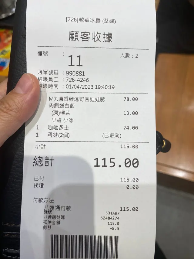 今日星期六去荃灣食晚餐,夜晚6:00見都冇咩人,平時星期日中午係需要排隊,今日經過見到唔需要排隊就入咗去試食,同小朋友一齊揀咗一個火鍋,同埋咖吔多士,個火鍋出場同餐牌張相係一樣,豬肉有五塊,然後成鍋都係菜,因為所有配菜都唔會另上,所以等咗好耐先熟,煮嘅期間,不停漏啲湯出嚟,等好耐同埋煮得好辛苦,如果肚餓就千祈唔好叫呢個餐,同埋個湯底係好飲嘅,但係偏向淡口,如果鍾意重口味嘅都唔適合,最後一大一細都食唔晒呢一個火鍋,可能因為個多士食飽咗!成鍋都係菜,最後食唔晒,性價比唔算話好高,因為除咗幾快豬肉之外,冇任何肉類!另外,架央多士都唔錯,牛油好香~會再嚟試多一次雖然嗰日唔多人,但係樓面都比較忙,好難先搵到一個人,但佢哋都有禮貌會提醒小心熱水,期間我主動掉位,佢哋即刻換返張單俾我,有一個是侍應姨姨仲請我食個小朋友食糖果~…查看更多