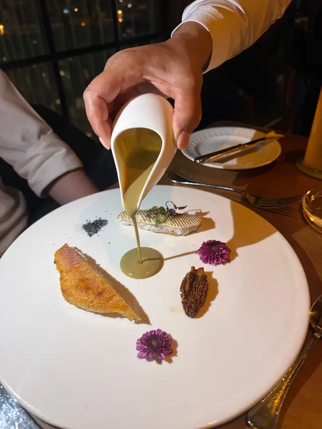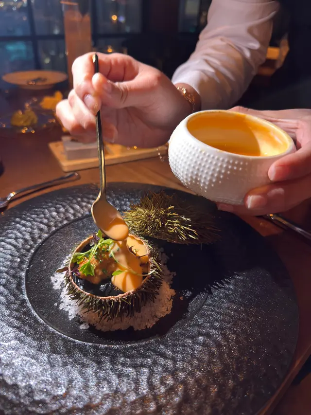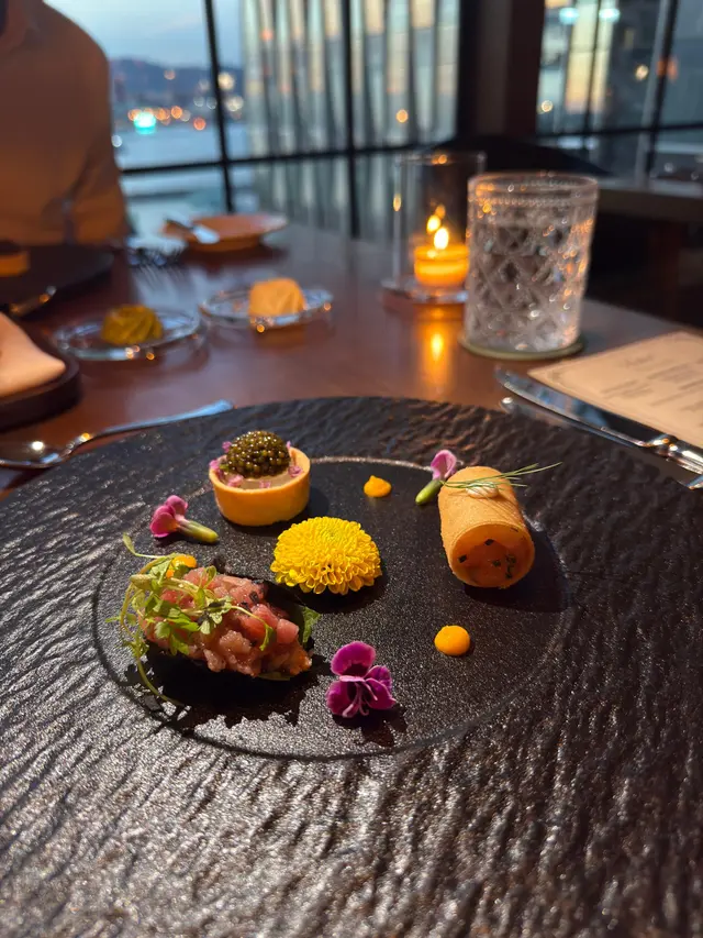 位於銅鑼灣世貿中心11樓,以復古圖書館為主題,胡桃木書架+暖黃燈光超有feel~窗邊位可看維港夜景,每晚有live band演奏,超適合約會慶生!Chu Toro Tartare, Royal Daurenki Caviar, Red Prawn Tartare拖羅他他鮮甜柔滑, 魚子醬咸香爆珠, 紅蝦清爽開胃, 紫蘇葉炭烤過超提香!✨ Hokkaido Sea Urchin海膽creamy到爆💥 搭配蟹肉絲和生蠔凍, 墨魚汁畫龍點睛✨ Lobster 龍蝦湯濃郁到掛勺, 龍蝦肉質彈牙+檸檬泡沫超fresh✨ Red Grouper魚皮脆得像薯片!魚肉嫩滑配羊肚菌醬, 層次感絕了✨ Charcoal Grilled Abalone備長炭香超誘人🔥 鮑魚肝醬濃郁到犯規✨ Miyazaki Wagyu Beef和牛雪花太漂亮啦, 入口即化不誇張, 炭烤香氣留在齒間✨ Belgium 64% Chocolate Cake巧克力濃郁不膩, 柚子清香平衡得剛好, 完美收官!…查看更多