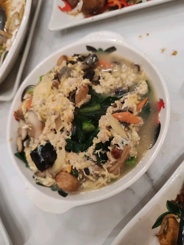 在附近開完會後,老闆說要食好一點,於是我便訂了雪園壹號享用午餐。我們12點到後,都非常多客人,但是冷氣有點明顯不夠,我們一行6人點了一份6人套餐。開餐的效率都非常高,首先是醉豬手,非常香濃的酒味道,而且豬手都是沒有骨的,之後就是酸辣湯,是我們一致都非常欣賞的菜式,味道非常香濃,配料都非常充足。之後麻醬青瓜,沒有甚麼特別,但都是清新的。炒年糕份量都非常充足,還有窩貼,京都肉排等。每一碟的份量都不是很大,但最後我們都非常飽了,滿意的一餐。…查看更多