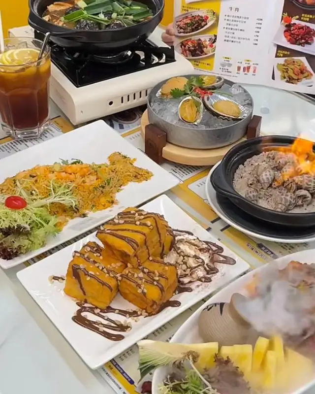 今日約咗幾個老友去土瓜灣搵食,行到浙江街轉角見到呢間茶記。入到去卡位闊落,冷氣夠涼又唔會太凍。伙記阿姐見我哋四個人,好友善咁安排咗張大枱。✨必食推介✨鹽焗花螺:原煲上枱熱辣辣,開蓋仲聞到陣陣海鹽香。花螺粒粒飽滿,用竹籤拮出嚟仲見到螺肉好新鮮,淡淡鹹香帶出鮮味,食到停唔到口!雙冬羊腩煲:羊腩炆到淋滑入味,連皮帶肉好豐腴。最正係啲冬菇同馬蹄,吸晒湯汁精華,馬蹄爽甜解膩!榛子醬果仁厚切粒粒西多士:邪惡到爆嘅甜品!西多士厚切成粒粒狀,炸到外脆內軟。淋滿流心榛子醬,面頭灑滿果仁,口感豐富到震!超大凍檸茶:杯大過我塊面!茶底濃而不澀,檸檬清香,甜度啱啱好,解膩一流。間舖雖然係茶記又平價,但食物水準拍得住大排檔。最鍾意佢哋嘅街坊人情味,仲會同熟客傾吓仔女經。…查看更多