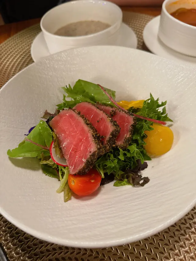 今晚諗住同老公撐枱腳,搵左間觀塘西餐食!🔥蘑菇湯及雜菜湯蘑菇湯和雜菜湯都展現了他們對於湯品的精湛技巧。蘑菇湯濃郁滑順,以新鮮的蘑菇為基底,味道濃郁而不過於油膩。蘑菇的香氣充滿整個湯品,與奶油的柔和口感相融合,帶來一種濃郁的滋味。另一方面,雜菜湯則以豐富的蔬菜為主,每一口都能品嚐到蔬菜的鮮甜,同時保留了蔬菜的嚼勁。🔥烤鐵板吞拿魚沙律吞拿魚經過烤製後,外層微微焦香,內部仍然保持著鮮嫩多汁的口感。它的鮮味與沙律的清爽相得益彰,每一口都帶來一種平衡的美味。配以新鮮的蔬菜和適量的醬汁,這道沙律既健康又美味,絕對是沙律愛好者的不二之選。🔥意大利黑醋配巴馬臣火腿沙律黑醋的酸度和巴馬臣火腿的鹹香完美地平衡在一起,帶來一種令人垂涎的口感。沙律中的配菜如新鮮的生菜、番茄等,為這道沙律增添了豐富的層次感。🔥美國頂級肉眼美國頂級肉眼是一道令人期待的主菜,肉質鮮嫩多汁,口感豐富。烹調得恰到好處,保留了肉眼的原汁原味,每一口都能品嚐到肉質的鮮美。搭配上適量的調味料,使得這道肉眼更加美味。優質的食材和精湛的烹飪技巧使得這道美國頂級肉眼成為一道令人難以忘懷的主菜。🔥西班牙黑毛豬鞍這道菜以西班牙黑毛豬鞍作為主要食材,這種豬肉的質地嫩滑,脂肪分佈均勻,帶來豐富的口感和濃郁的豬肉風味。經過烹調後,豬肉散發出誘人的香氣,口感細膩,每一口都給人留下深刻的印象。配以適量的調味料和配菜,這道菜呈現出西班牙獨特的風味和風格,絕對是肉食愛好者的一大享受。🔥朱古力蛋糕朱古力蛋糕是一個完美的結束,口感細膩濃郁,入口即化。它的甜度適中,不會過於沉重,讓人能夠細細品味朱古力的香氣和豐富的口感。蛋糕的質地柔軟,帶有一絲絲的濕潤感,給人一種舒適的感覺。…查看更多
