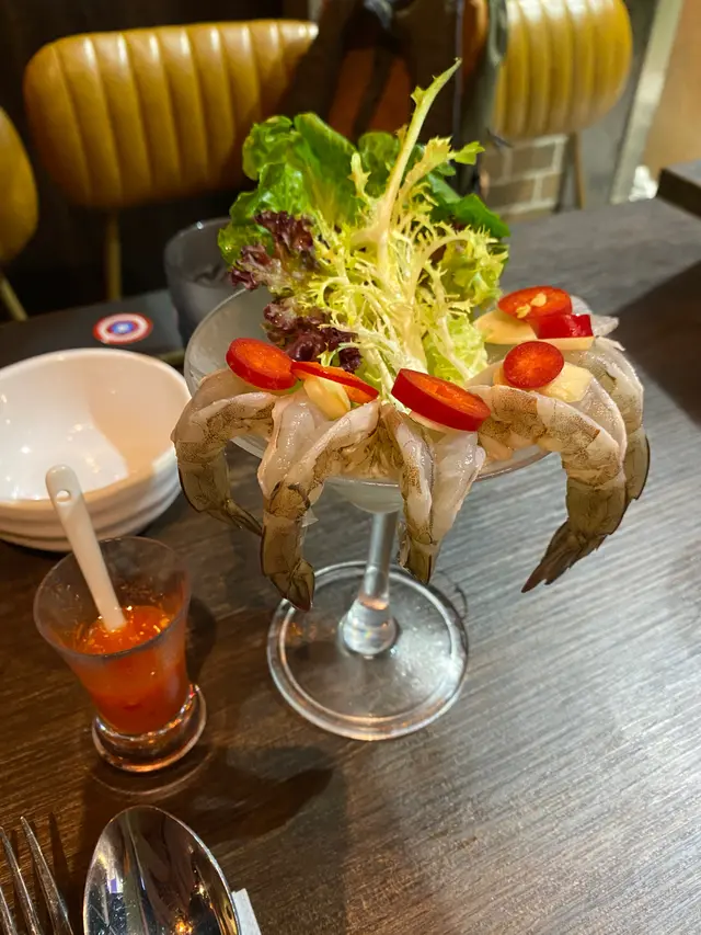 。所以就約左朋友一齊去試下間餐廳~順便慶祝同佢生日食餐飯。來食泰國菜當然係必叫個刺身蝦同串燒來食食啦