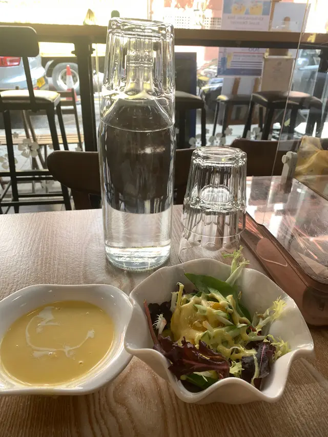 海膽什錦魚生飯。又黎到我出黎搵野食時間。幾fd出黎lunch …美孚附近⋯好似冇咩邊間日本野就黎左呢間餐廳,平日lunch 都少人不用排隊Lunch set ,每人都會有 日本蒸蛋,麵豉湯,沙律作為頭盤,因為要用app落單, 沒有Menu, 都吾知什錦刺身係咩刺身,所以最好問問侍應我就叫左 海膽什錦魚生飯,本身入面係甜蝦我加左錢轉牡丹蝦,另外魚生有4塊三文魚同油甘魚⋯個飯有埋少少紫菜碎,都好好味我朋友叫左吉列豬扒烏冬定食,韓式泡菜豚肉鍋,牛肉鍋。試食過吉列豬扒,好鬆脆,幾好食。最後每人都會送番一舊抹茶蕨餅甜品,好味😋…查看更多