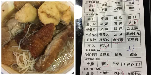好味的車仔麵 鴻運車仔麵 2017-10-22外子一早外出工作,剛好辦完事後經過鴻運車仔麵,當然叫碗外賣啦!沙爹湯都好味!但之前食的咖喱汁更惹味!唔怕辣的,可以一試。貢丸片是必食!其次係豬扒!魚皮餃只是本人愛吃,但應該不是新鮮包或自製的,所以不算是必食。豆卜則攞黎索下汁食,都幾好食!之前外子點食過蘿蔔,都好入味的!聽聞豬紅也不錯的,但我唔食豬紅,所以無法評價。今次係第一次叫外賣食,個人認為堂食更好食!好似貢丸片,可能因為浸得耐,所以淋了點,而豬扒都係⋯⋯但堂食真係好食好多!另外,今次係點米粉,略嫌米粉太碎了⋯⋯但之前食過幼麵又覺得麻麻⋯⋯下次再試其他麵底吧~…查看更多以上食評乃用戶個人意見 , 並不代表OpenRice之觀點。讚好分享好味的車仔麵 鴻運車仔麵 https://s.openrice.com/QrbT0Cp8i00檢舉 張貼 評分5味道3環境3服務3衛生4抵食推介美食貢丸片,豬扒用餐日期2017-10-21等候時間10 分鐘 (外賣自取)人均消費$43 (午餐)