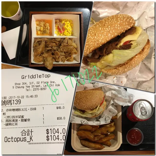 Um⋯我食過的,可以不食。 板上 (D2 Place) 2017-10-23假日嘛~可以的話,就去曬曬太陽,郁下身體吧!今日中午陪外子跑步(我真係行㗎咋! 無跑呀!),然後再去D2逛逛,覓食一下。去到D2One,行勻D食市,最後揀左「板上」。食Menu好似幾吸引咁,但食落麻麻。我點左燒豚五花珍珠飯,味道普通,個飯好似就咁淋個汁上去(快餐係咁,仲想想?),個汁無乜特別,少少酸又少少甜咁,而且個飯有D爛,豚肉又硬。外子點了個黑豚漢堡配脆薯。個包唔似一般Buger店用的,似係超級市場買到的嘉頓漢堡包囉⋯⋯而且係唔Juicy的。唯一可以讚的,係個脆薯皇~不過其實脆薯係應該要整得好食的!其實都係可以入口嘅,不過我地點既2樣唔係美食囉~但環境算係闊落,若果想搵個地方坐低吹下水,都係可選擇的。…查看更多以上食評乃用戶個人意見 , 並不代表OpenRice之觀點。1分享Um⋯我食過的,可以不食。 板上 (D2 Place) https://s.openrice.com/QrbT0LJ8i00檢舉 張貼 評分3味道4環境4服務4衛生4抵食用餐日期2017-10-22等候時間10 分鐘 (堂食)人均消費$52