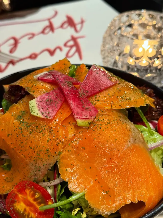 今晚同老公仔撐枱腳,揀咗間有情調嘅意大利餐廳。餐廳設有室內及室外雅座,仲已經佈置好聖誕裝飾,氣氛滿滿。煙三文魚沙律煙三文魚同沙律新鮮度PASS! 而且煙三文魚口感結實,帶魚脂香👍🏻安格斯牛肉丸薄餅聽講呢度薄餅好出色,當然要叫返個試試佢。薄餅批底軟熟,有嚼勁,而且唔會過分濕潤。喜歡薄餅嘅朋友一定唔會失望。而牛肉球焗過後口感會變得更加結實,同濃厚嘅牛肉味互相加持下,有種鄉村風味。地中海鄉村魷魚我都好鍾意地中海烹煮方式嘅海鮮,簡單調味帶出海鮮原始鮮味。魷魚滑嫩Q彈,配搭橄欖、蒜頭,為溫和嘅魷魚味道呈現不同風味。Tiramisu 係我喜愛嘅口感❤️係較為挺身嘅質感,但仍能保持口感滑溜及濕潤既平衡,有濃濃奶油及咖啡香氣,而酒味唔會太重。絕對會想返嚟再食!…查看更多