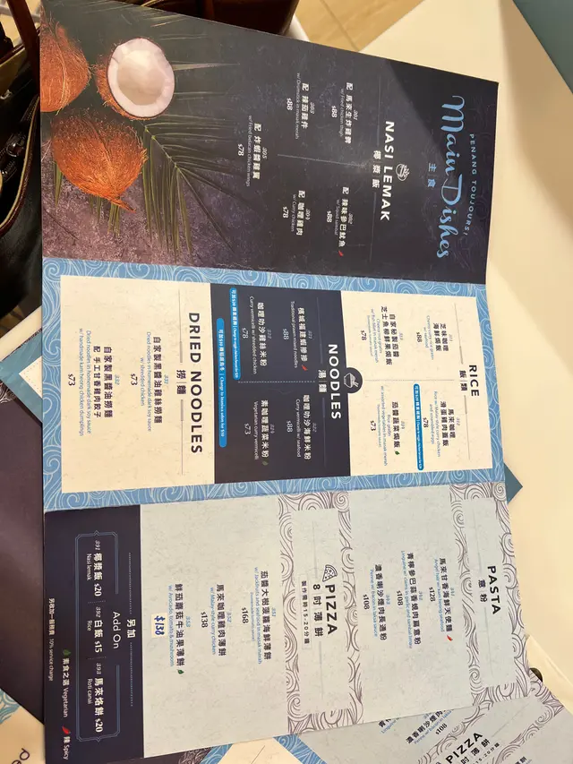 My wife and I walk around to see any new restaurant for lunch. Then we find Penang Toujours.The staff are very nice here and the beach declaration is relaxing. We ordered a jackfruit salad, nasi lemak, deep-fried squid rings and pandan kaya toast. The mask lemak and pandan kaya toast are especially delicious and it is a “must” to order. The chilli sauce is unexpectedly match with the rice and increase appetite. The best part of the toast is the kaya sauce is mixed with butter.Penang Toujours is definitely worth trying, especially for someone who like desserts. …查看更多