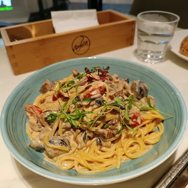 呢間餐廳好多人幫襯,我同朋友閒日夜晚嚟食飯,食食下啲人甚至開始要等位,真係好受歡迎!🍲是日餐湯 加$15是日餐湯係蘑菇忌廉湯,味道濃郁,滑口,非常開胃。🍝野菌意大利粉配牛肝菌醬 $98呢碟意粉份量都算多,醬汁濃郁,好掛汁,配搭大量嘅菇同番茄等配菜,增添咗口感同味道,好快就食哂。🍖燒西班牙豬肋骨配自製燒烤醬 $188呢個主菜配有沙律菜,豬肋骨燒得啱啱好,肉質嫩滑,份量都十足,配搭燒烤醬好有風味。🥤凍朱古力 $20 朱古力味道夠濃郁🍨特濃朱古力心太軟配雪糕 $68外脆內軟嘅心太軟,切開有流心效果,配上雪糕一齊食,非常好滿足~…查看更多
