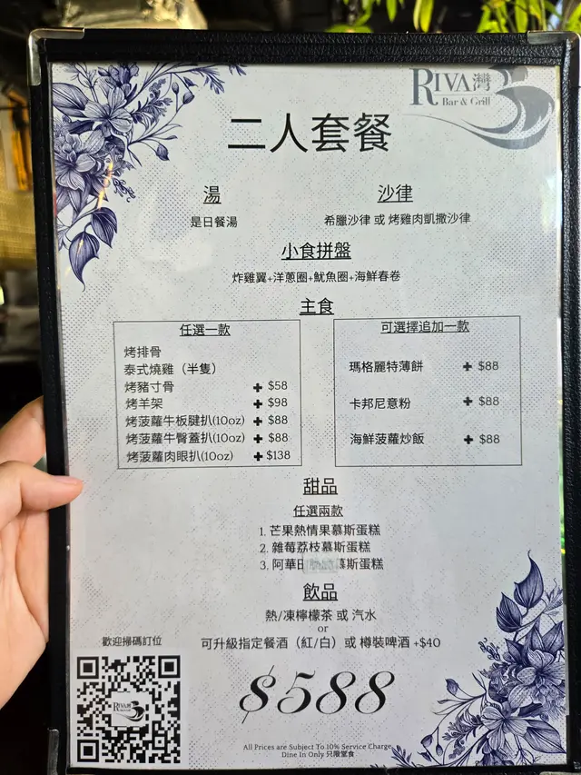 早幾日同屋企人去咗馬灣新開嘅景點,順便搵間餐廳chill下。餐廳就喺沙灘側邊,對住藍天白雲,環境真係好舒服,坐喺度食嘢望住個海,感覺好寫意。最正係餐廳隔離有個專屬playground,小朋友可以玩滑梯、搖搖馬,家長都可以安心食飯。我哋叫咗$588嘅二人套餐,份量都幾足夠。頭盤有磨菇湯,菇味好濃郁,飲落滑滑地幾香。跟住有烤雞肉凱撒沙律,份量大,雞肉唔會太乾,配埋新鮮生菜同芝士碎,好開胃。小食拼盤有炸雞翼、洋蔥圈、魷魚圈同海鮮春卷。炸雞翼外脆內嫩,洋蔥圈同魷魚圈都唔會太油膩,海鮮春卷都幾有驚喜,餡料足。主菜係烤菠蘿牛臀蓋扒(10oz),牛扒烤得啱啱好,肉質嫩滑,配埋烤菠蘿的清甜味,好高質。甜品方面,有芒果熱情果慕斯蛋糕同雜莓荔枝慕斯蛋糕,賣相好精緻,味道都唔錯,啱晒夏天食。飲品叫咗凍檸茶同fruit punch,凍檸茶夠香夠凍,fruit punch都幾清新。臨走仲有coupon送,原來北角都有分店,值得光顧。…Read More