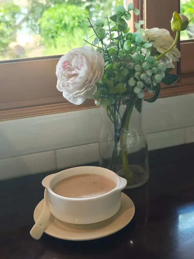 呢間素食餐廳係朋友推介,開喺花店入面,環境好舒服,坐低已經聞到花香,氣氛好chill。今次我哋揀咗特上套餐,包括前菜、主菜、甜品同飲品。前菜有磨菇湯同蔬菜春卷。磨菇湯菇味濃郁,質感幼滑,飲落去好暖胃。春卷外皮脆卜卜,餡料新鮮,唔油膩。香芒沙律用咗羽衣甘藍同新鮮芒果,醬汁酸甜開胃。乾鍋菜花有驚喜,辣味同麻香好突出,好入味,食到停唔到口。主菜的肉醬大啡菇配菠菜批都好正,大啡菇多汁,肉醬味道同真肉好似,菠菜批唔會太膩。忌廉芝士牛肝菌扁意粉忌廉香滑,牛肝菌味濃,意粉煙韌。甜品我揀咗抹茶雪糕同凍椰奶西米露。抹茶雪糕茶味濃郁,唔會太甜;椰奶西米露椰香突出,西米煙韌。飲品方面,西瓜沙冰同菠蘿荔枝沙冰都好清新解渴,啱晒夏天。總結嚟講,呢間餐廳環境舒服,食物有水準,素食都可以好有層次同驚喜。無論係素食者定普通食客,都值得一試!…Read More