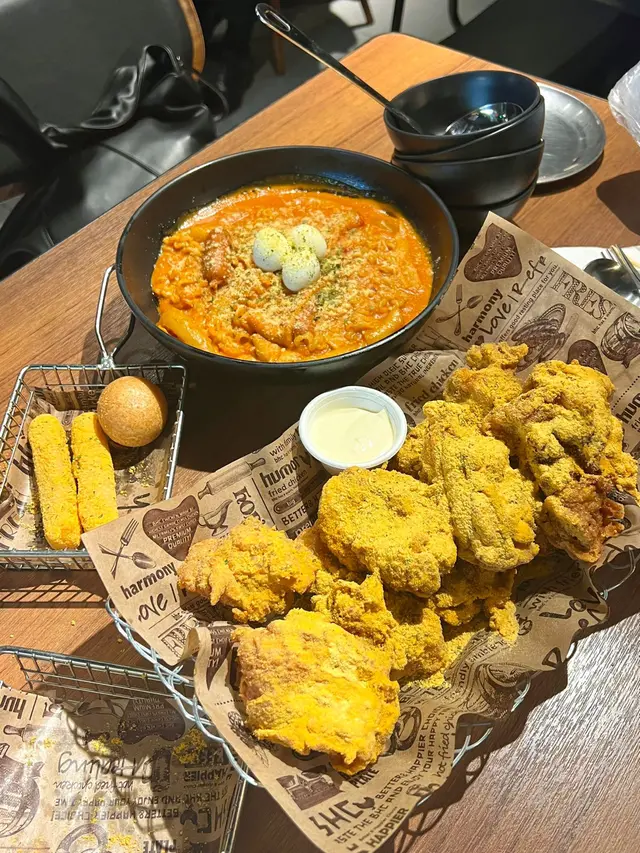 終於試到韓國超人氣炸雞品牌 BHC 啦!💥 呢餐叫咗佢哋招牌芝士炸雞🧀 同 辣炒年糕火鍋,完全無踩雷,仲要好飽肚!🍗芝士炸雞一上枱已經香到唔得了~外層香脆金黃,灑上滿滿嘅芝士粉,鹹香十足,越食越上癮😋!炸雞肉質Juicy唔鞋口,每啖都夠惹味,沾埋隨餐附送嘅白醬更加分💯。🍜辣炒年糕火鍋份量足,入面有年糕、香腸、魚蛋、即食麵同芝士,辣中帶甜,唔會嗆喉,啖啖都好邪惡🔥。最正係佢啲年糕煙韌彈牙,唔會煮到爛晒!🍟小食方面有芝士條同炸年糕球,外脆內軟,正到忍唔住再追加!🌟 食評評分:•味道:⭐⭐⭐⭐⭐•價錢:⭐⭐⭐(略貴但值得)•賣相:⭐⭐⭐⭐•氣氛:⭐⭐⭐⭐•推薦指數:💯💯💯📍 BHC 炸雞(香港分店)👫 適合朋友聚餐 / 打卡 / 輕鬆宵夜💬 想試正宗韓式炸雞,呢度真係唔可以錯過!…查看更多