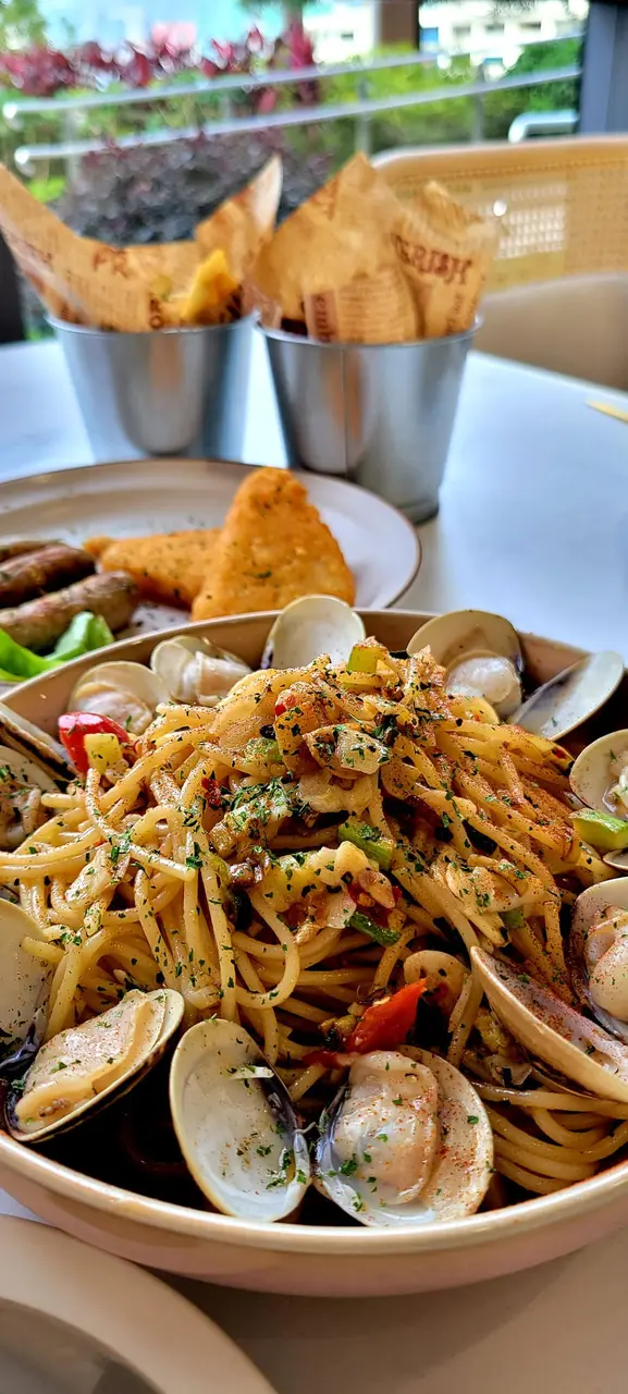套餐仲包埋湯/沙律/飲品、我簡左咖啡、同事簡左水果茶,幾好~ 總括而言,我覺得午餐性價比都高,唔係話超級驚艷、但係對得住個價錢、最緊要環境好、寬敞又望海、落地玻璃。 服務都好啊~無投訴