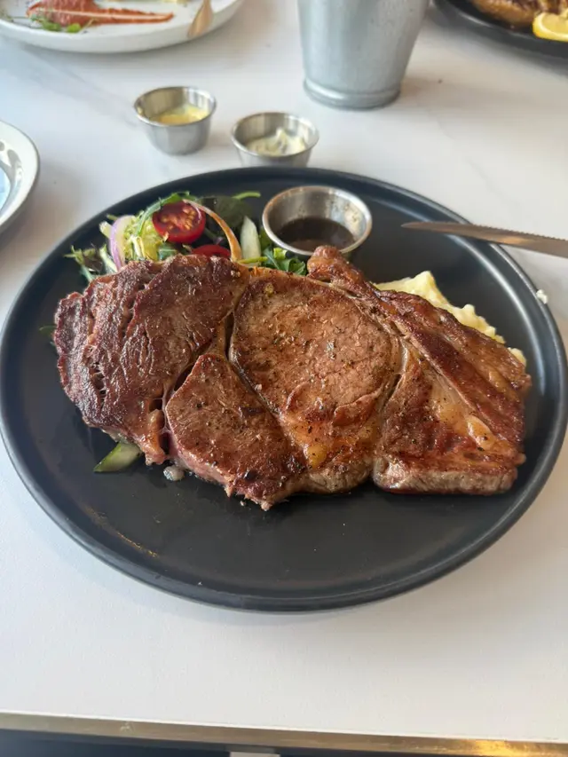 😽喺好耐之前經過試過嚟happy hour、今日突然同事話想去第二區試吓西餐又泊到車、我就突然間諗起北角匯呢間西餐廳好啦,我哋今日就喺呢度做同事中秋節飯其實而家經濟不景氣下、我都驚呢間餐廳仲存唔存在, 嚟到嘅時候可能我哋尚早係第一檯、之後走嘅時候已經全餐廳滿座。食物 : 我哋點咗2個午市套餐👍🏻我揀咗美國安格斯肉眼扒、 5成熟,配薯蓉。食得出係靚嘅牛扒、煮得熟度都啱啱好。 最亮點嘅係個薯蓉好有牛油香味另外同事揀咗香煎比目魚魚皮好脆,魚肉好滑,醬汁好特別