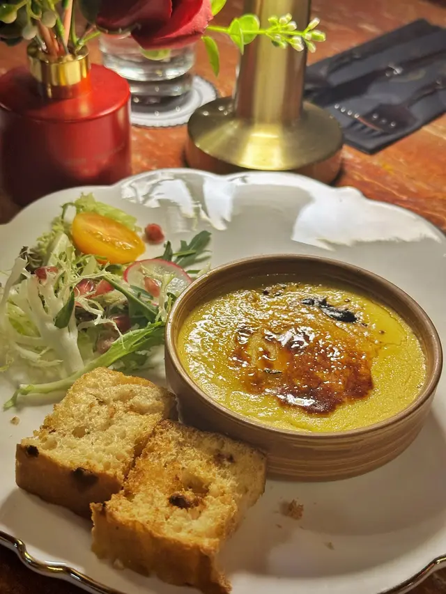 呢間位於中環蘭桂坊既法國菜餐廳,裝修格局紅色為主,充滿浪漫氣氛🌹。餐廳佈置高雅大氣,佈置細膩優雅,融合了巴黎晚期19世紀的豪華風格。菜單以頂級食材烹調而成的創意佳餚,讓味蕾享受到法式料理的精髓。服務周到細緻,為顧客締造難忘的用餐體驗。🌟Lobster Bisque龍蝦湯口感很順滑,賣相挺漂亮的。🌟Lobster Carpaccio把生牛肉片切粒,吃起來像是沙拉的口感,是一個很開胃的前菜,味道酸酸的。🌟Caramel Foie Gras Tart外形很像焦糖燉蛋,質感非常Creamy,可以用來當醬塗在麵包上面,這樣吃比較好吃。🌟Fried Soft-Shell Lobstep Mix Green炸軟殼蟹脆脆的很好吃,配上綠色青菜解解膩。🌟Grilled Lobster Tarrag on Sauce 龍蝦塔很特別,蛋醬含有一點點龍蝦的味道,很滋味。🌟with Lobster Sauce with Daily Special(Lamb)個人喜歡羊肉喊7成熟,肉質會嫩而咬感剛好,龍蝦醬配羊架很配。🌟Grilled Lobster with Pearl Barley採用薏米作為risotto,口感好彈牙,烤龍蝦很香口。🌟Cream Foie Gras鵝肝很肥美,意粉的口感很滑順,我喜歡這道菜。🌟Lobster Yuzu Sorbet我很喜歡柚子冰淇淋,飯後很開胃,口腔瞬間清新了,底層有個塔配搭起來多一層口感。…查看更多