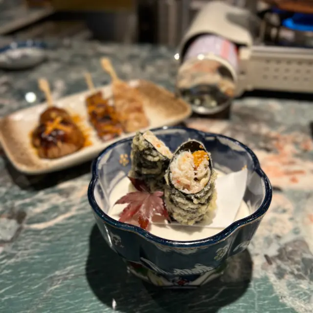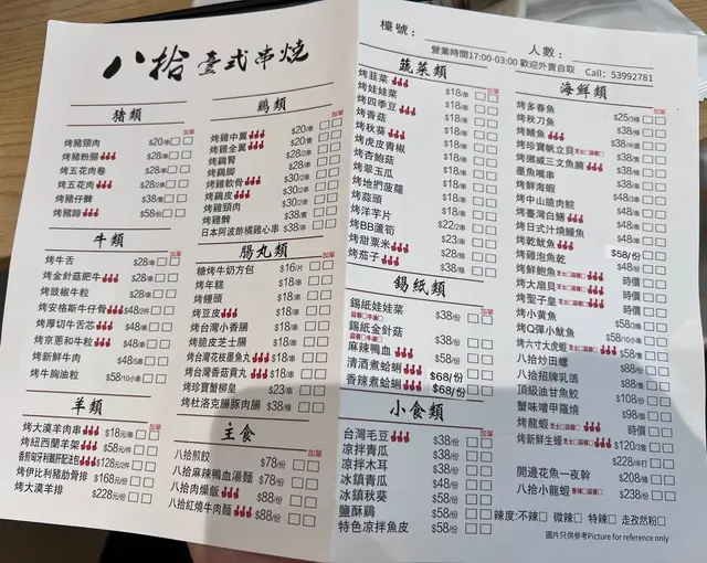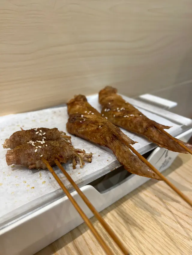 孜然燒雞中翼size 適中,雞肉嫩口滑溜川燒雞腎粒粒一口size,爽口鹽燒牛舌厚度適合,表面烤得焦香入味鎖汁無騷味老北京牛肉串風味十足,微辣中牛味濃郁山椒燒豬頸肉烤得爽脆焦香帶點微辣,豬頸肉裏面油脂味十分香口。燒潮式手打牛丸有牛味夠彈牙,唔會成舊粉蜜糖燒台灣花枝丸、台灣腸,花枝丸唔厚粉,新鮮足料有咬口燒韭菜爽甜唔會燒得過侯又黃,燒茄子唔會太油,蒜蓉牛油金針菇爽口燒菠蘿解膩清甜餐廳座位不多,但尚算寬闊舒適,啱同朋友聚餐