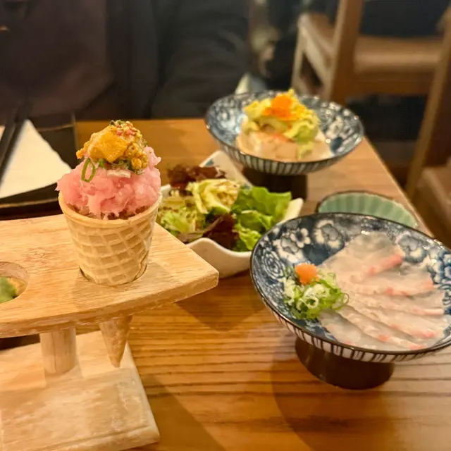 中上水準但不足夠 和道屋 2025-04-29食物種類頗多 質素不俗👍🏻可以一試但暫不考慮再訪🧏🏻♀️這個價錢可以一次過吃這麼多種類算很不錯但是也有其他更高質素的選擇帝王蟹餐:沙律普普通通👌🏻海膽蟹肉甜筒👌🏻感覺和甜筒不搭 甜筒有一陣寵物餅乾味 而且偏甜帝王蟹腳大漁浜燒拼盤👍🏻海鮮質素不錯 大部分都鮮甜多汁帝王蟹有三塊 都頗為大件但是其他海鮮尺寸較細小 有點不過癮大頭蝦餐:牛油果醬凍豆腐沙律✨口感超順滑 味道搭配得很好日本真鯛薄切👍🏻巨型爆膏大頭蝦串燒拼盤👌🏻大頭蝦肉質霉霉爛爛🙅🏻♀️ 不肯定是不是品種問題 但是的確爆膏和巨型視覺效果十分震撼蟹膏醬十分出色 鹹香味十足✨串燒中規中矩👌🏻壽喜燒和牛很肥美 油花很漂亮👍🏻廣島牡蠣 蠔味很重 而且算是大隻✨整體而言好像甚麼都有吃 又甚麼都吃不夠😂定量的食物份量不多放題的和牛又很膩吃完有種空虛感~…查看更多以上食評乃用戶個人意見 , 並不代表OpenRice之觀點。讚好分享中上水準但不足夠 和道屋 https://s.openrice.com/QrbT0YDrR00檢舉 張貼 評分3味道4環境5服務5衛生2抵食推介美食牛油果醬凍豆腐沙律用餐日期2025-04-10用餐途徑堂食人均消費$600 (晚餐)慶祝紀念生日