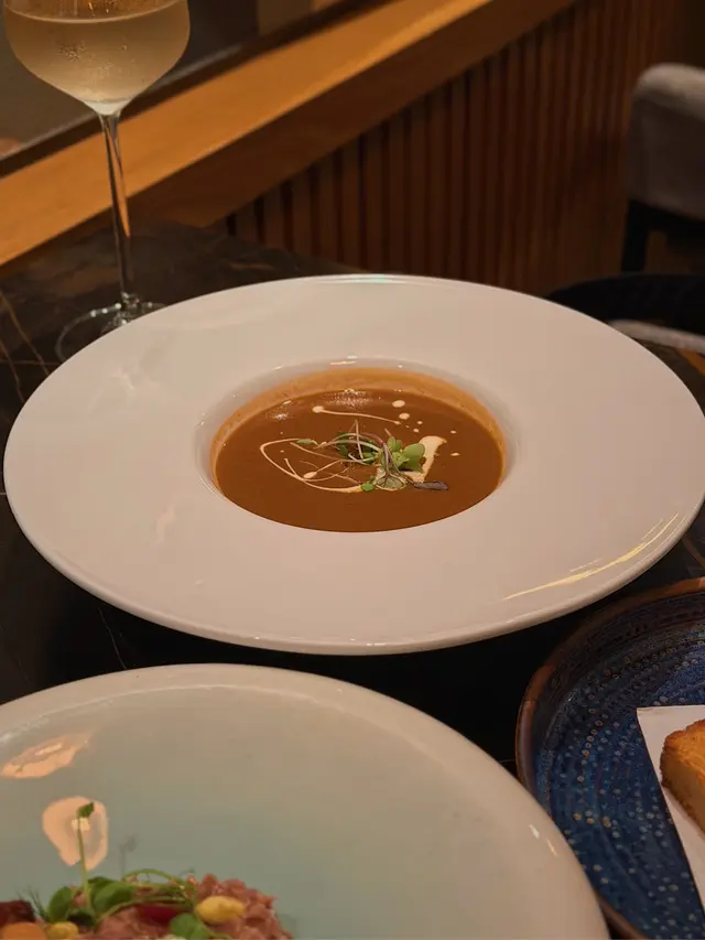 更為驚喜 帶子十分爽口 龍蝦湯鮮味濃郁😆主菜揀咗香煎黑鱈魚配鹹蛋紅花忌廉汁 🐟