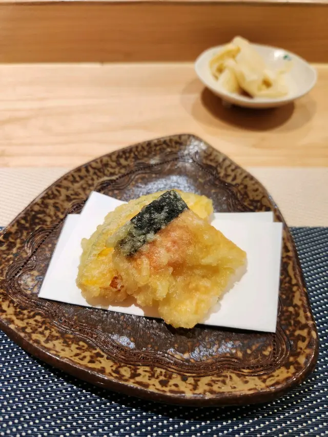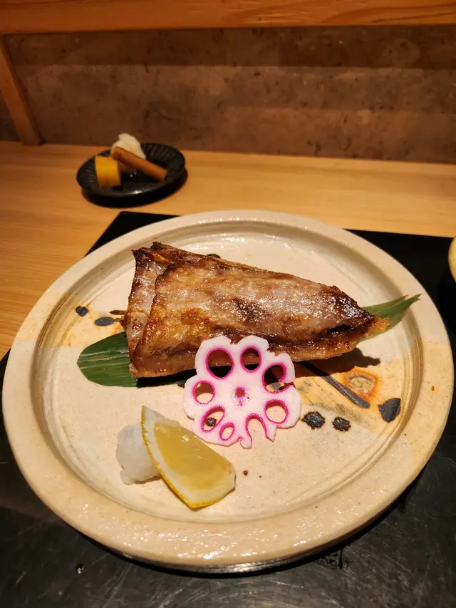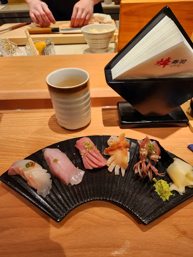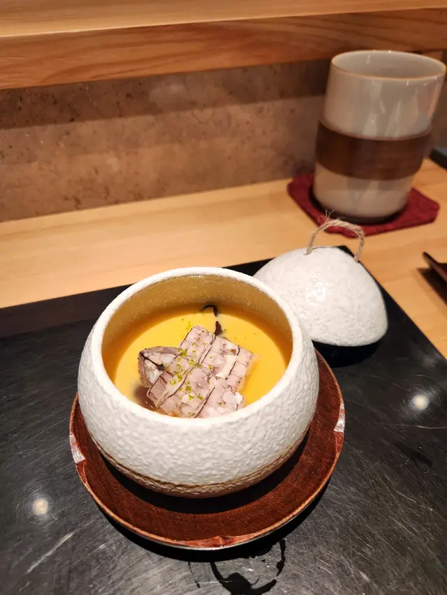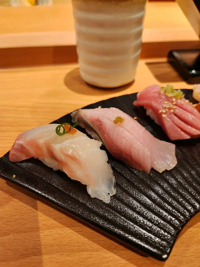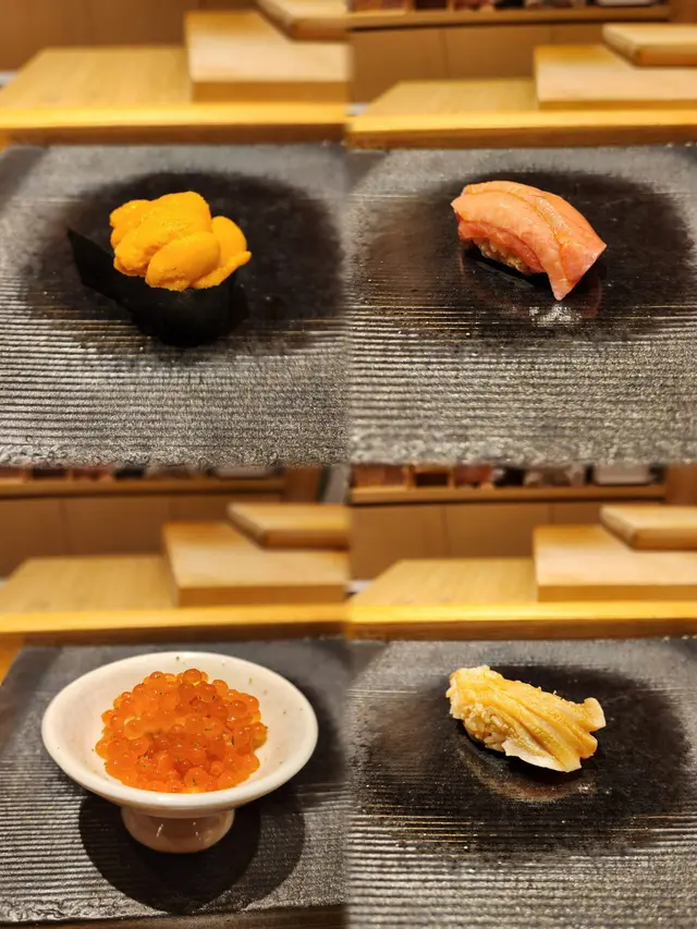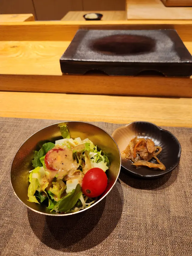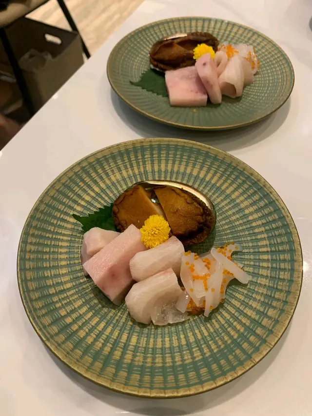 今晚食咗餐好正嘅!由頭盤到甜品都好有驚喜。而且餐廳環境好,前菜麻醬沙律,麻醬味夠香,但又唔會搶味,好清新。刺身間八薄切包海膽紫蘇花,魚鮮甜,另外海膽甘香。春魚燒得皮脆,加埋日本蔥好香。壽司方面:北寄貝爽脆,拖羅入口即溶,好香!筋子鹹鮮加清新,海膽好新鮮,超鮮甜!食完刺身壽司,就到鐵板燒!馬友魚皮脆肉嫩,好香魚油味;蟶子同大蝦都爽口鮮甜。 仲有我至愛嘅鵝肝,煎得好香!薄燒牛肉質好嫩,入而好多蔥蒜!呢餐食材新鮮,煮得又好,值得推薦!…查看更多