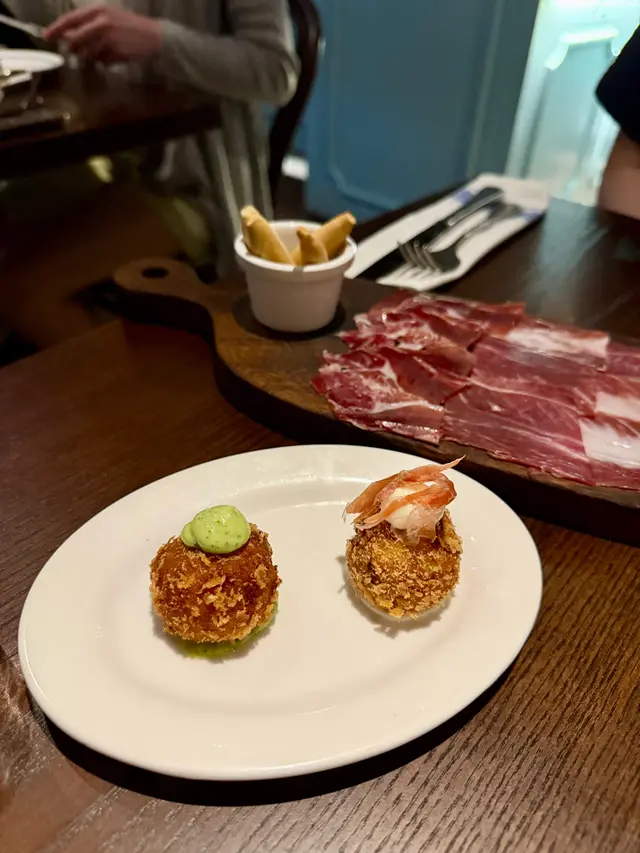 —🫔 Ham and Prawn Croquetas🐷 Iberico Ham❤️🦐 Gambas🥘 Arroz Marisco❤️🍬 Churros•🍹 Red Sangria—最近愛上吃Aioli 發現Aioli配甚麼都特別好吃! 😋跟住就同朋友心血來潮來吃西班牙菜來到位於銅鑼灣的calle ocho其實靚既Iberico Ham就咁食就已經好好味 又吾一定要配瓜既😛仲有我好中意吃的churros 開心😇😇😇…查看更多