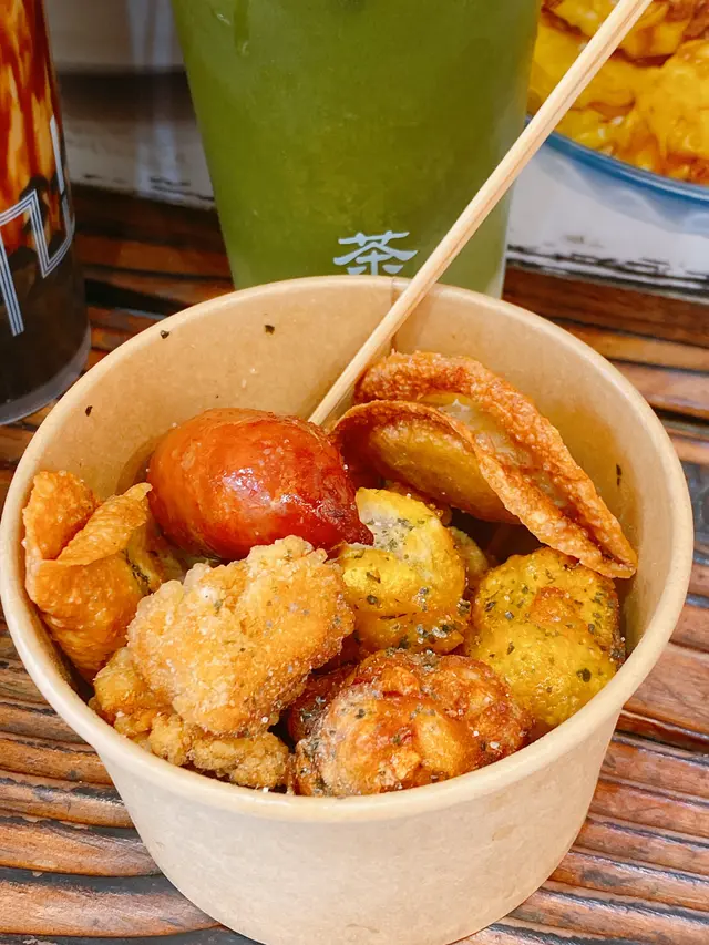 快啲嚟收藏好飲嘅茶飲店‼️店舖不在主街,但路過見到不少人排隊,食貨的直覺,必然高質,果真如此👍🏻👍🏻👍🏻✨腸粉三寶✨ 香港經典街頭小食:燒賣、魚蛋及腸粉,啱晒心多多嘅我😍每樣食啲,一次過食晒想食嘅野❤️腸粉口感滑嫩且皮薄,配合味道濃厚嘅混醬,十分滋味。魚蛋及燒賣都好彈牙,搭配他們家的辣汁,香辣惹味,很受歡迎。✨炸物拼盤✨ 呢個炸物拼盤真係必點!包含多款特色小食,如蛋餃、花枝丸、鹽酥雞、炸燒賣及台灣腸。炸物外皮香脆唔油膩,每一件都炸到香脆金黃,熱辣辣好好味,配埋冰凍的茶飲,好正🙌🏻✨黑糖珍珠奶茶✨ 茶味濃郁,珍珠彈牙得嚟又帶有黑糖香甜,奶香同黑糖甜味互相襯托,好飲到停唔到口!✨檸檬話梅冰✨ 檸檬話梅冰清新醒神,酸酸甜甜嘅口感剛剛好,非常解膩,飲落舒服透心涼,絕對係炎熱天氣必備。✨抹茶多多✨ 甜而不膩,抹茶味濃到可以感受到細膩茶香,伴隨多多嘅乳酸味,飲落非常平衡,不會太甜,幾好👍🏻。食物質素同飲品都非常有水準,好有驚喜!下一次嚟元朗,記住一定要嚟茶試吓🙌🏻🙌🏻想睇更多介紹,馬上Follow我啦😁。…查看更多
