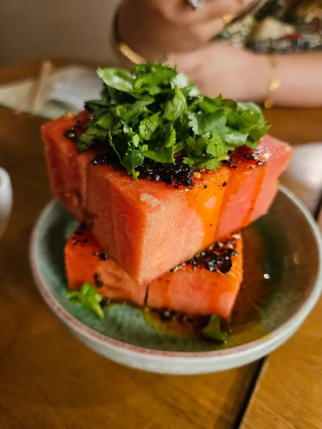 🍉Spicy watermelon was super refreshing, friends started making at home to fight for extremely hot summer 🐟Uroko-yaki Tilefish with Preserved Mustard Greens Fish Broth, crispy and the savoury sourness perfectly enhance the contrast of oily crispy fish🕊Perfectly pink, tender and juicy, yet, no lavender smell or taste as mentioned on the menu🦪Appalud to the watercress oyster, perfectly emphasized both ingredients signature flavors in a well-baalnced way with appropriate savoury flavors from land and ocean*Packed space, nice staff, good vibe, toilet bit...er...…查看更多