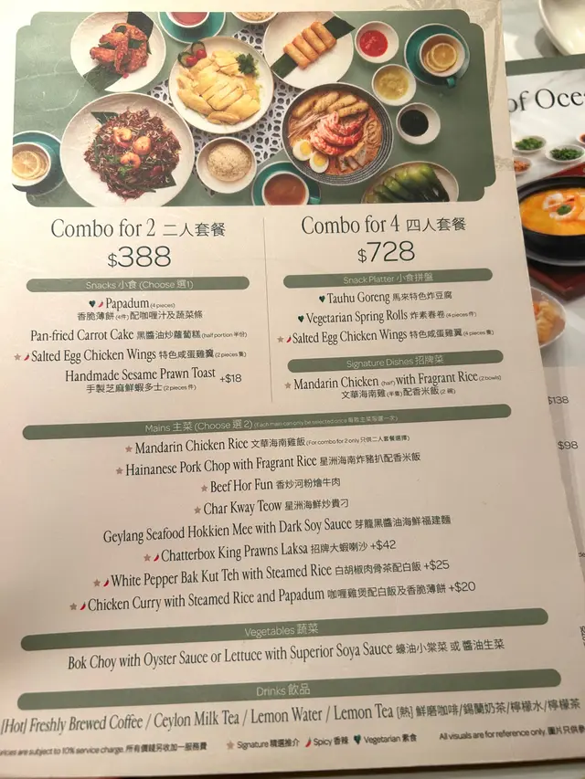之前係啟德airside食過一次 感覺唔錯👍🏻同男友收工後 係大圍圍方見到 又想再encore!今次叫左個 二人套餐前菜:【黑醬油炒蘿蔔糕 (半份)】一上碟就聞到好香! 同平時煎嘅唔同,用黑醬油炒到有少少焦香,甜甜鹹鹹,入面依然係軟熟嘅蘿蔔糕,好惹味!半份啱啱好,唔會滯!【文華海南雞飯】雞肉連皮都超滑溜,完全冇骨,啖啖肉。雞油飯- 油潤得嚟好香,我同男友都忍唔住扒晒成碗飯!仲有齊三款醬(甜黑醬油、勁香嘅薑蓉、辣醬),點唔同醬又有唔同風味,正!呢個雞飯幾有水準!【白胡椒肉骨茶米線配油炸鬼】白胡椒味好出,飲落個喉嚨暖笠笠,好舒服。湯料好足,有啖啖肉嘅排骨、索晒湯汁嘅豆卜同金菇。碗米線吸晒湯,好入味!最正係條油炸鬼,可以就咁脆口食,或者浸兩浸湯,等佢軟身啲又充滿肉骨茶味,兩種食法都正!【醬油生菜🥬】簡簡單單一個菜,醬油鹹鹹甜甜,最正係面頭嗰啲炸蒜,脆脆地,成碟菜即刻香口晒!【熱錫蘭奶茶】食完咁多重口味嘢,飲返杯熱奶茶就 perfect 池!茶味夠濃,又滑,仲唔太甜!…查看更多