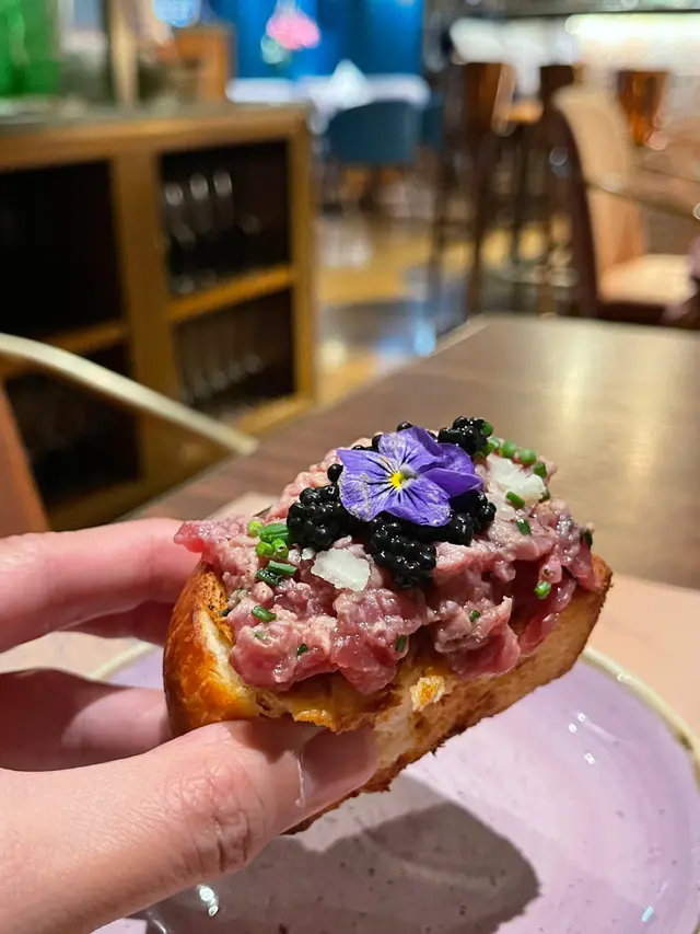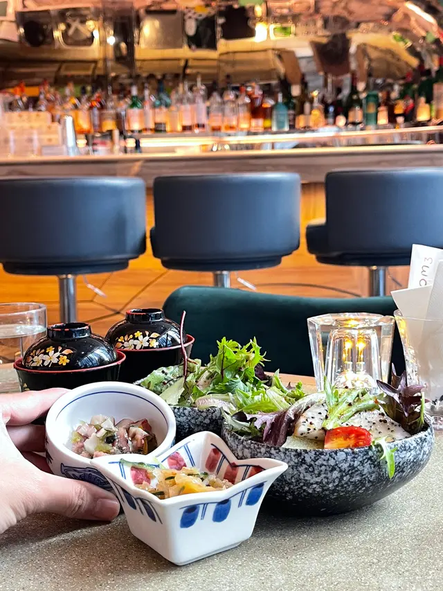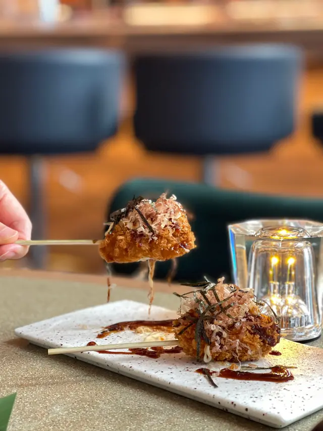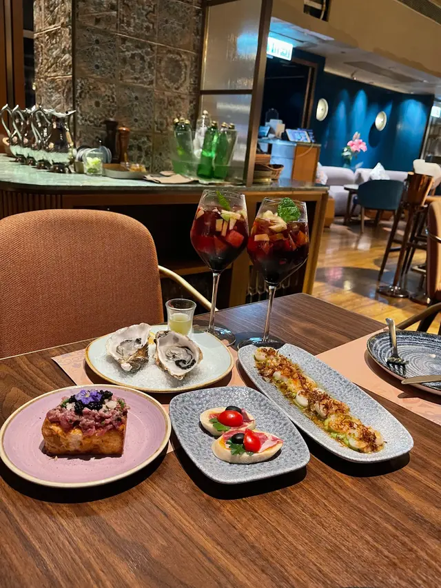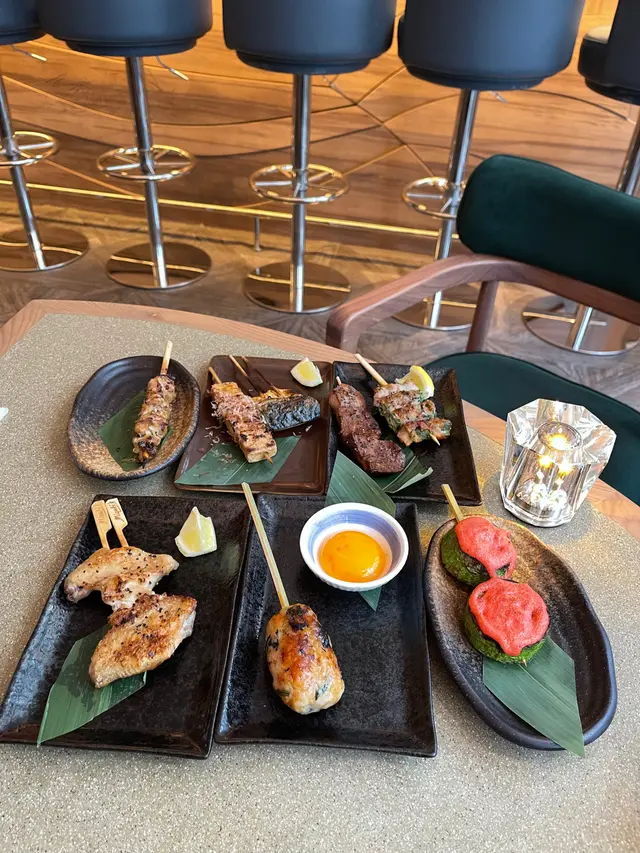 朋友找到一間好近尖東站出口的型格串燒居酒屋,落地玻璃景觀開揚,歐陸風設計空間感強非常打卡able,系同事朋友情侶閨蜜慶生紀念相聚好地方。午市串燒二人前Skewer Lunch Platter for Two餐前小碟芥末八爪魚及涼拌海蜇:兩款很受歡迎的日式餐前小食,八爪魚肉和海蜇一樣爽脆彈牙好開胃廚師精選沙律🥗生果沙律: 有蜜瓜和火龍果加上新鮮雜菜,清新開胃🫕味噌湯有蔬菜和蟹肉的味噌湯,帶有魚的鮮甜而不咸小食🦪吉列蠔外酥內軟保留到蠔的肉汁,賣相吸引🍢串燒(8品)1️⃣雞中翼(2只):外皮焦脆,肉嫰多汁,風味十足2️⃣厚切牛舌:厚薄適中,牛味濃郁,口感軟腍3️⃣西班牙黑豚秋葵:薄薄的黑豚肉燒過後更香濃,秋葵的爽脆中和肉的油膩感4️⃣鹽燒鯖魚:鹽燒最能夠帶出鯖魚的鮮味和油脂香,外皮甘香不會腥5️⃣日本豆腐:細細粒香脆可口6️⃣免治雞肉棒配日本蛋:雞肉和雞軟骨的比例很好,日本蛋黃濃郁香滑,加上微甜的燒汁,口感一流7️⃣明太子翠肉瓜:明太子的微辣鮮味配上清爽的脆肉瓜,新鮮的配搭8️⃣照燒雞肉:燒汁惹味,雞肉嫩滑,串燒必備主食🍝迷你蒜蓉牛油蟹肉天使面:蟹肉份量多,蒜蓉牛油香濃撲鼻🍜明太子醬冷烏冬:明太子醬帶有海鮮的鮮味,烏冬很滑🍰是日精選甜品是美味的綠茶大福,配上熱騰騰的日本煎茶🍵,超滿足!原來仲可以包廂唱K,設最低消費,可以嗌嘢食抵消返,下次約埋班朋友一齊去chill!…查看更多