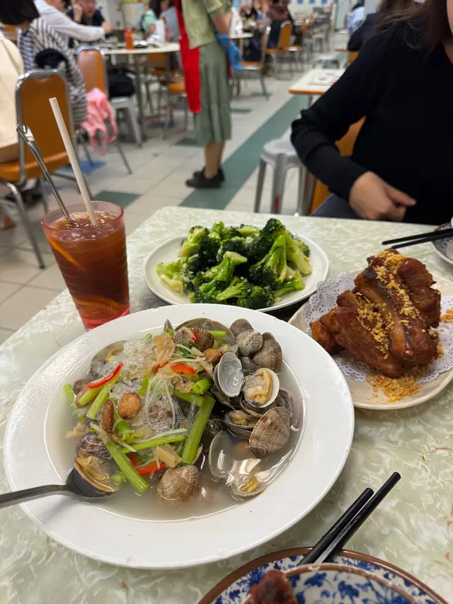 【🍽️上環棟記飯店|鑊氣十足嘅平民大排檔🎯】上環棟記飯店位於上環市政大廈熟食中心內,係一間充滿港式風情嘅大排檔。餐廳環境乾淨,雖然裝修簡單,但充滿地道風味,員工服務親切有禮。必試「乾炒牛河」🥩,鑊氣十足,牛肉嫩滑,河粉炒得均勻入味,份量超大碟!「蒜香骨」🐖炸得金黃酥脆,蒜香味濃,肉質保持juicy,送啤酒一流。「鹽水浸大蜆」🦪用最簡單嘅烹調方式,突出大蜆嘅鮮甜原味,蜆肉飽滿無沙。「蒜蓉炒西蘭花」🥦火候掌握得恰到好處,西蘭花爽脆可口,蒜香撲鼻。整體而言,棟記嘅食物份量十足,價錢實惠,人均消費約$180💰就食到超滿足。每道菜都熱辣辣上桌,鑊氣滿分,絕對係上環區隱世平民美食!#上環美食 #棟記飯店 #港式大排檔 #鑊氣小炒 #平民美食 #香港美食…查看更多
